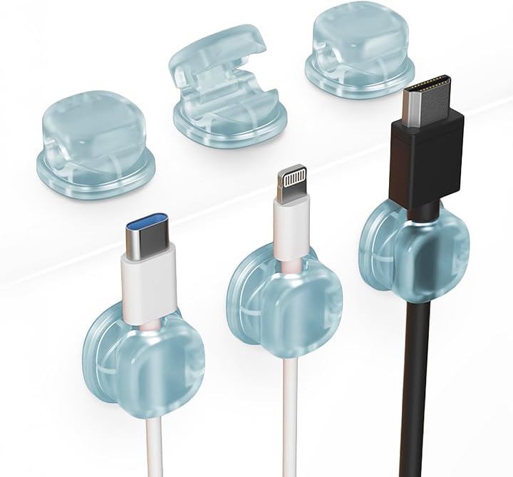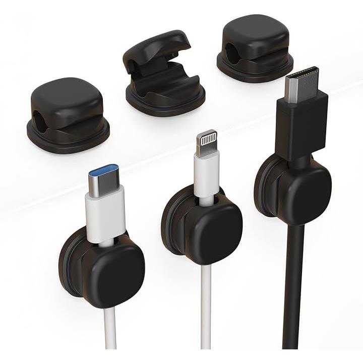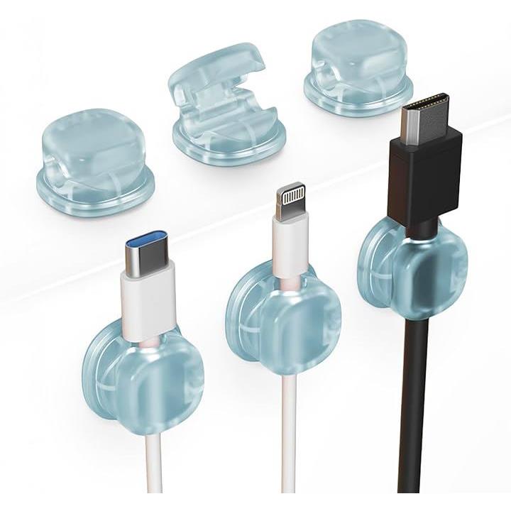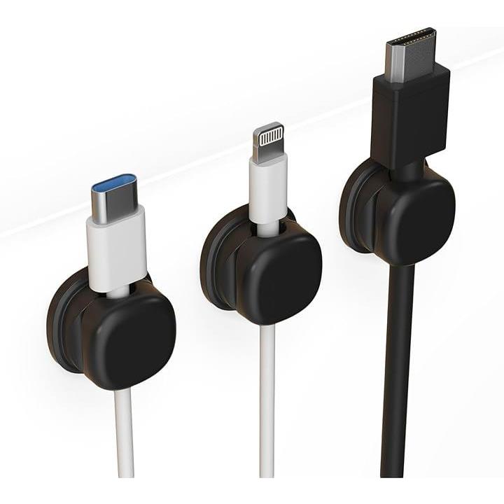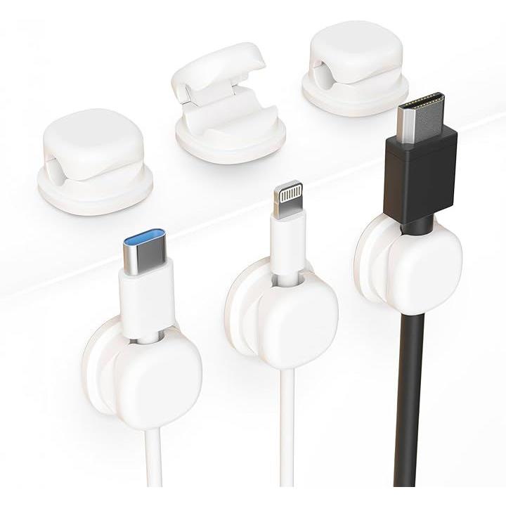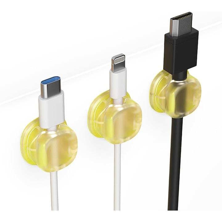 「強力固定xスマート整理。頼れるコンパクトケーブルホルダー」 超強力粘着で木製・ガラス・車内にもがっちり固定。狭い隙間にもフィットするスリム設計で、ごちゃつきを一掃。