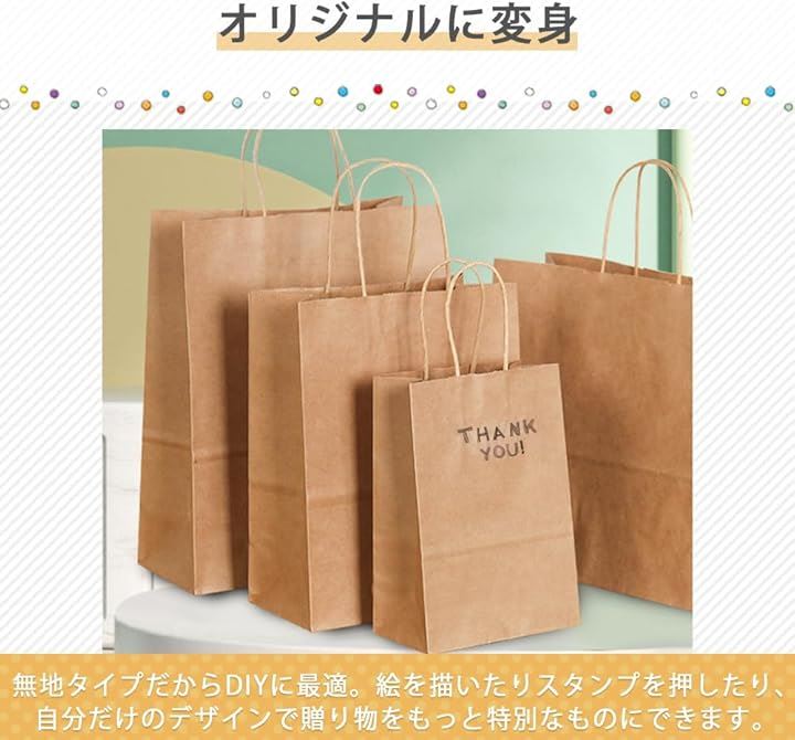 紙袋 ラッピング袋 手提げ ギフトバッグ クラフト素材 無地 無柄