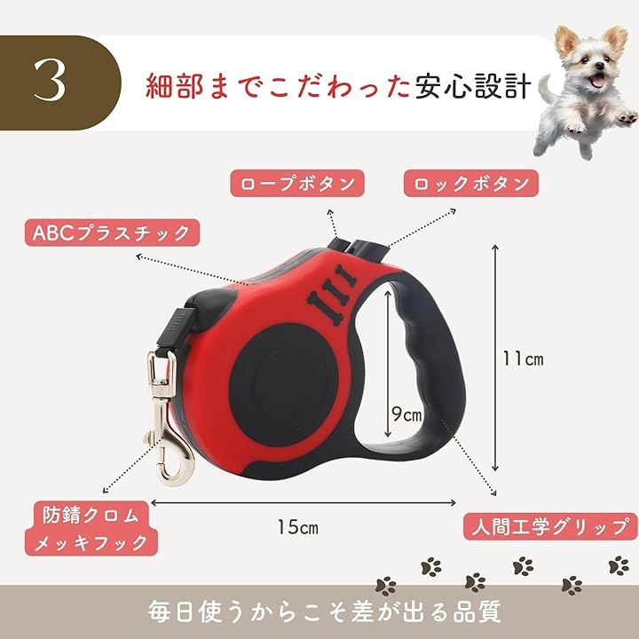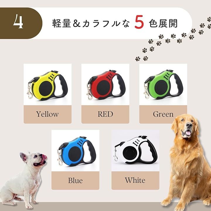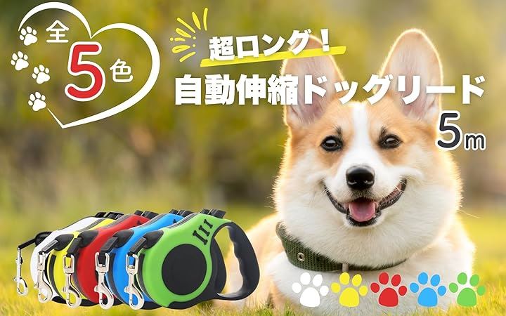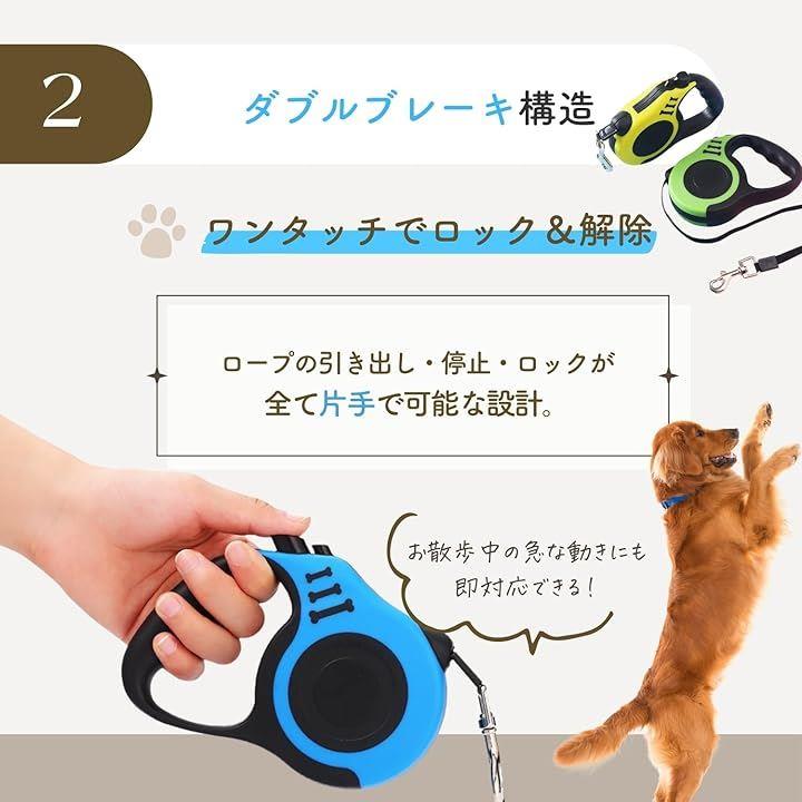 犬用リード 5m 伸縮リード 自動巻取り式 小型犬 中型犬 対応