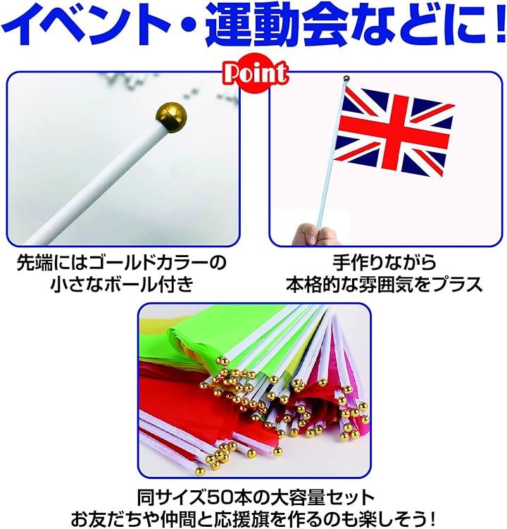 手持ち旗ポール 手旗棒 旗ホルダー 50本 プラスチック 旗竿 手持ちフラッグ