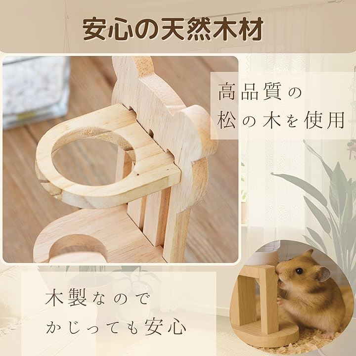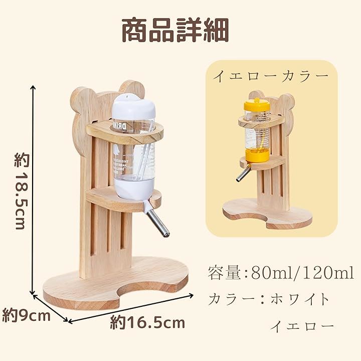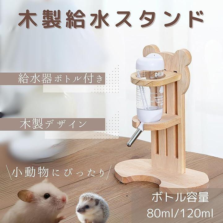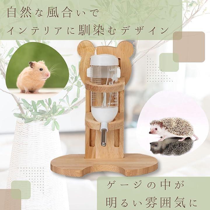 TikTrunk ハムスター 給水器 木製スタンド 高さ調節 小動物用 ウォーターボトル おしゃれ 可愛い