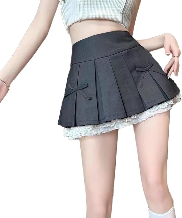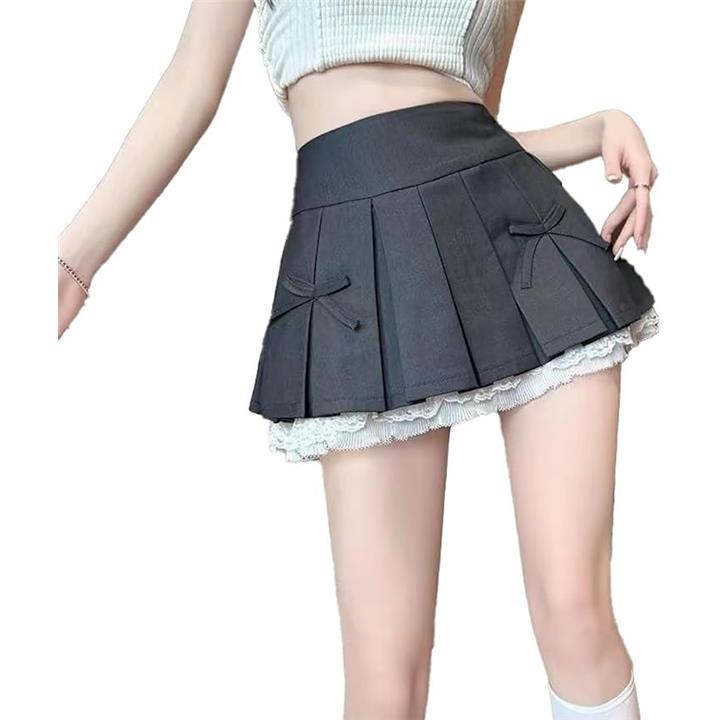 プリーツ スカート レース フリル ボトムス レディース ミニ ハイ ウエスト シンプル 無地 カジュアル 韓国風 韓流 体型 カバー 着回し クール トレンド モノトーン パンツ ズボン
