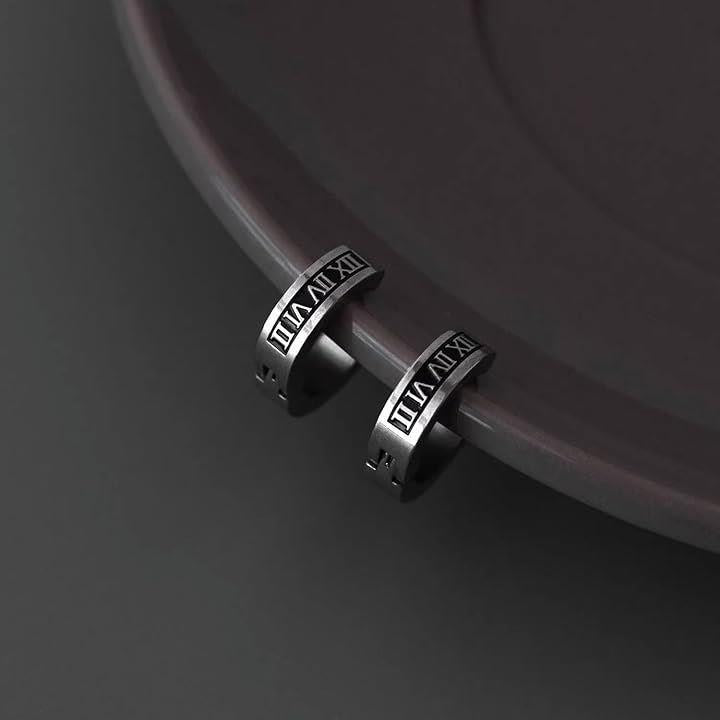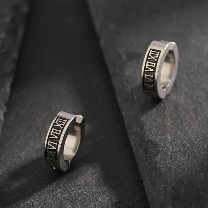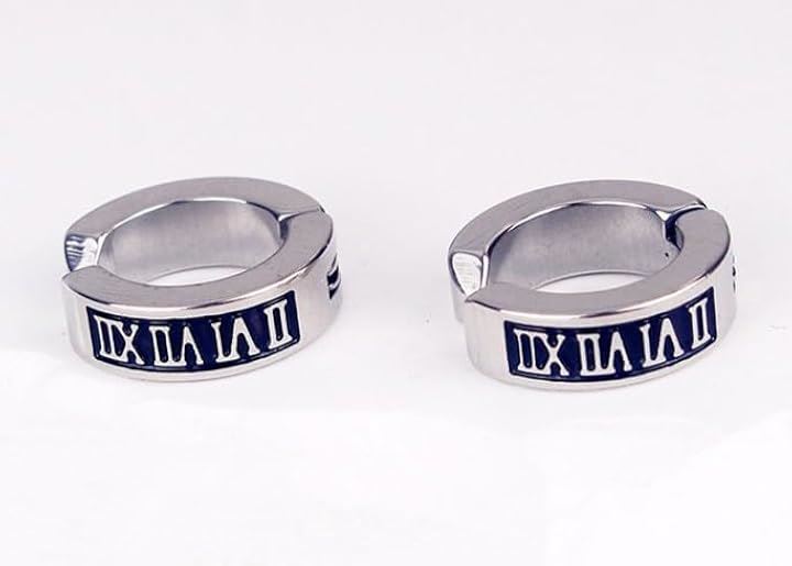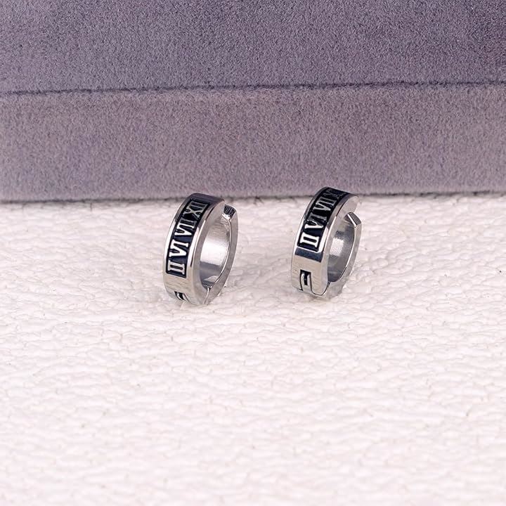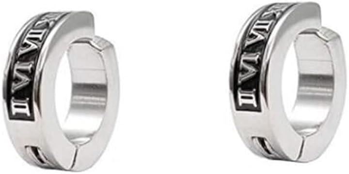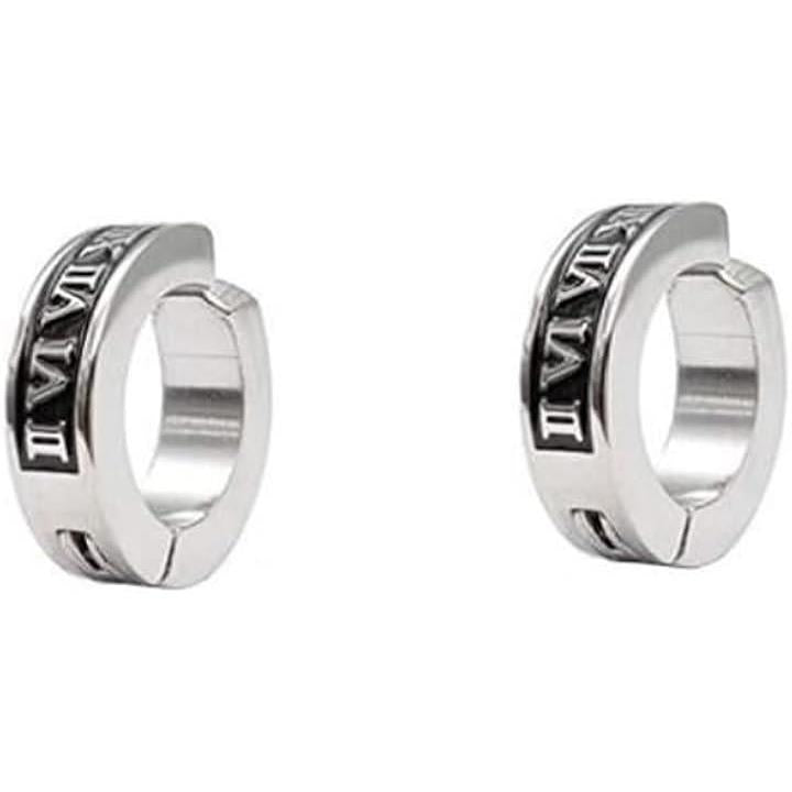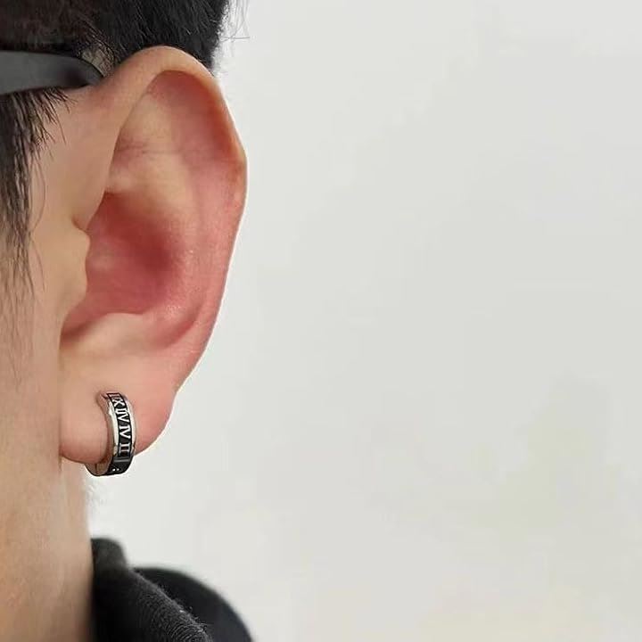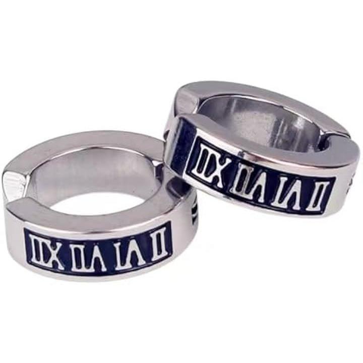 イヤーカフ 両耳 ローマ数字 ブラック 黒 シルバー メンズ フェイク ピアス穴不要 かっこいい リング フープ 2つ入り