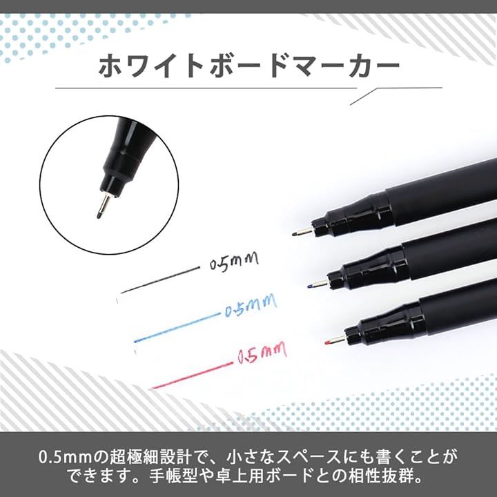 ホワイトボードマーカー ペン 超極細0.5mm 書いて消せる スリム型