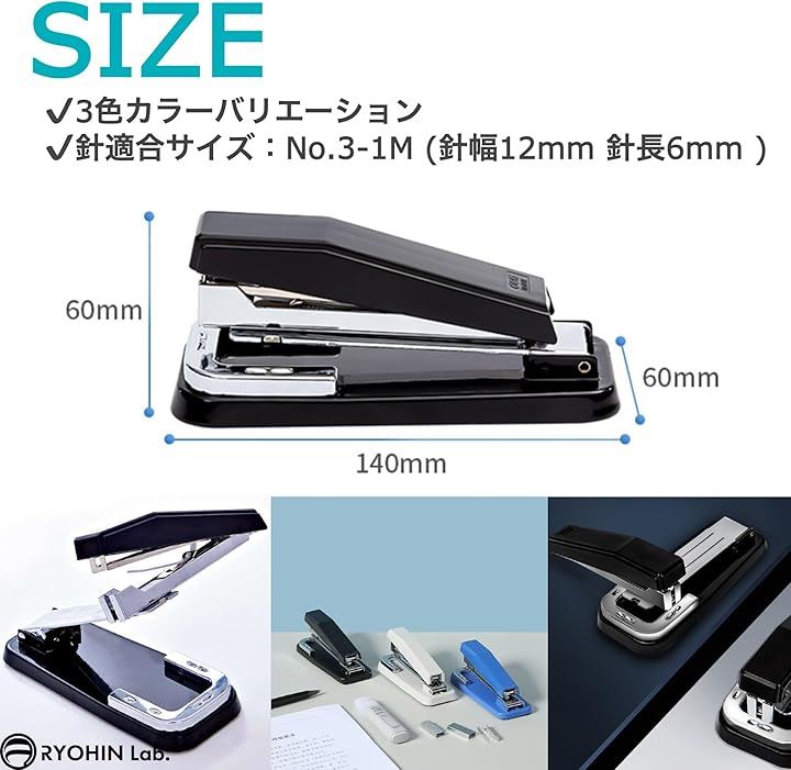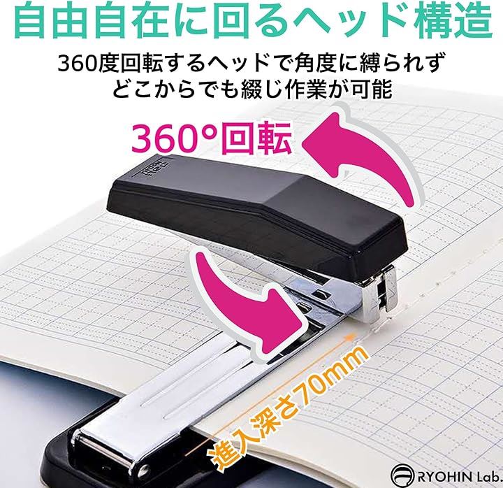良品ラボ ホッチキス 中綴じ 回転式 製本用 ステープラー ホチキス 中型 25枚綴 業務用 事務用品 資料まとめ ノート作り 3号 No.3-1M 針幅12mm 針長6mm 1個