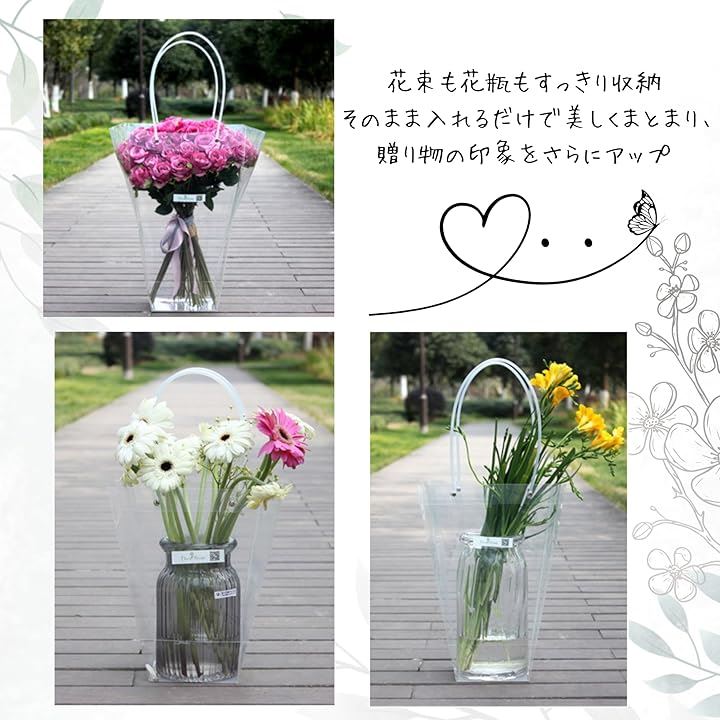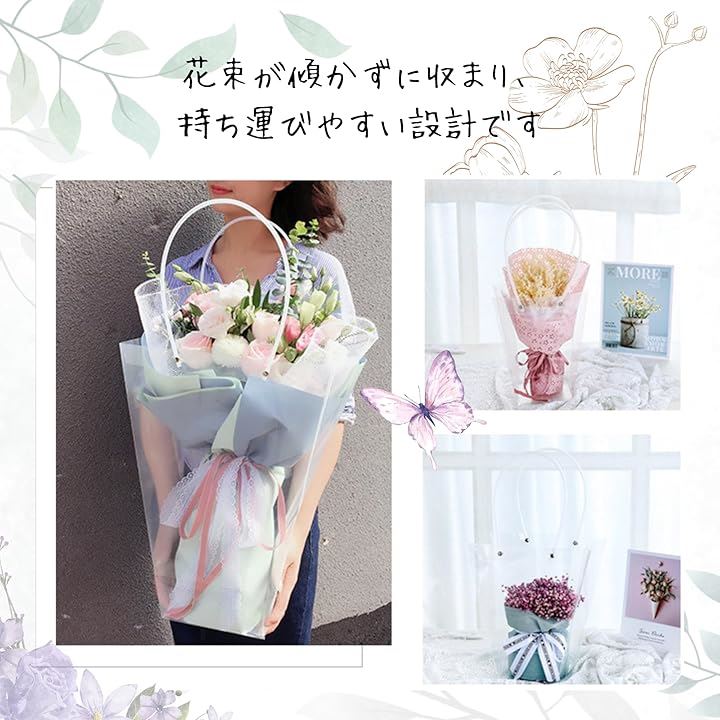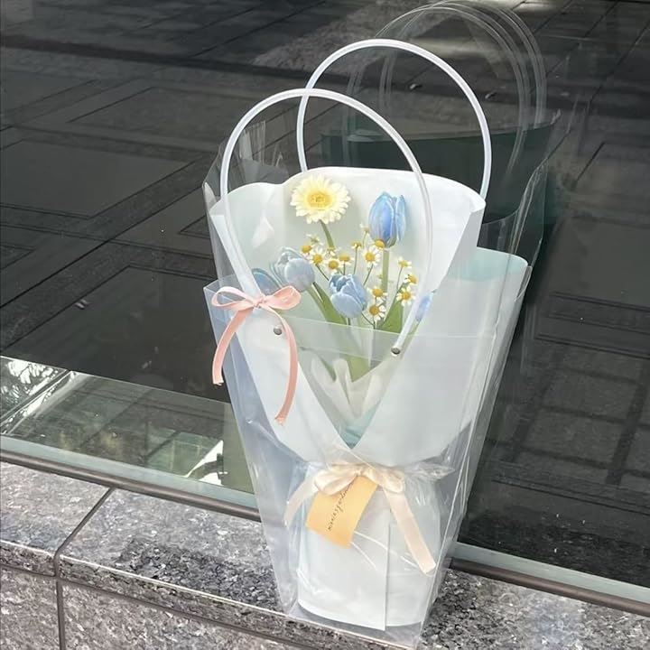 クリア フラワーブーケバッグ ギフトバッグ ハンドル付き フローリストショップ パッケージ用品 10個セット