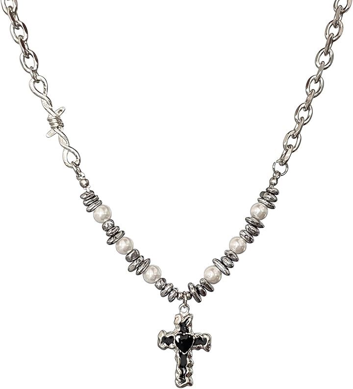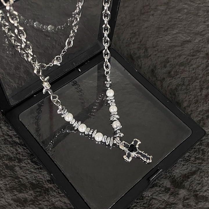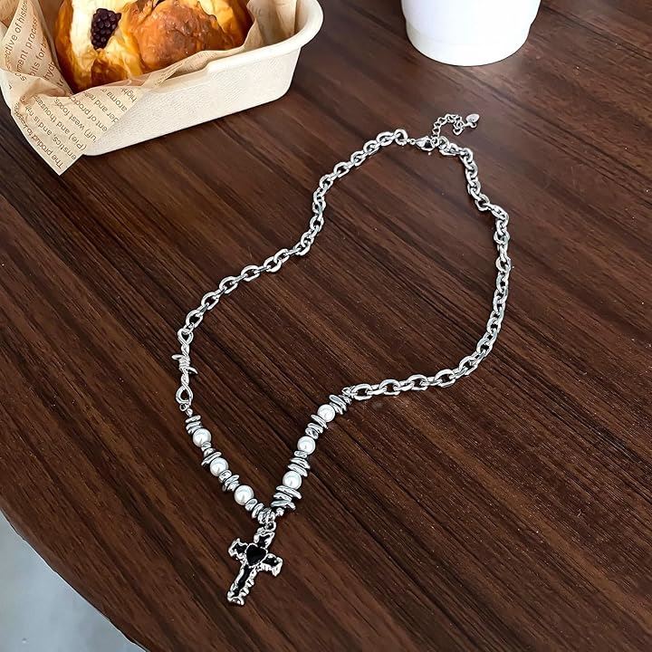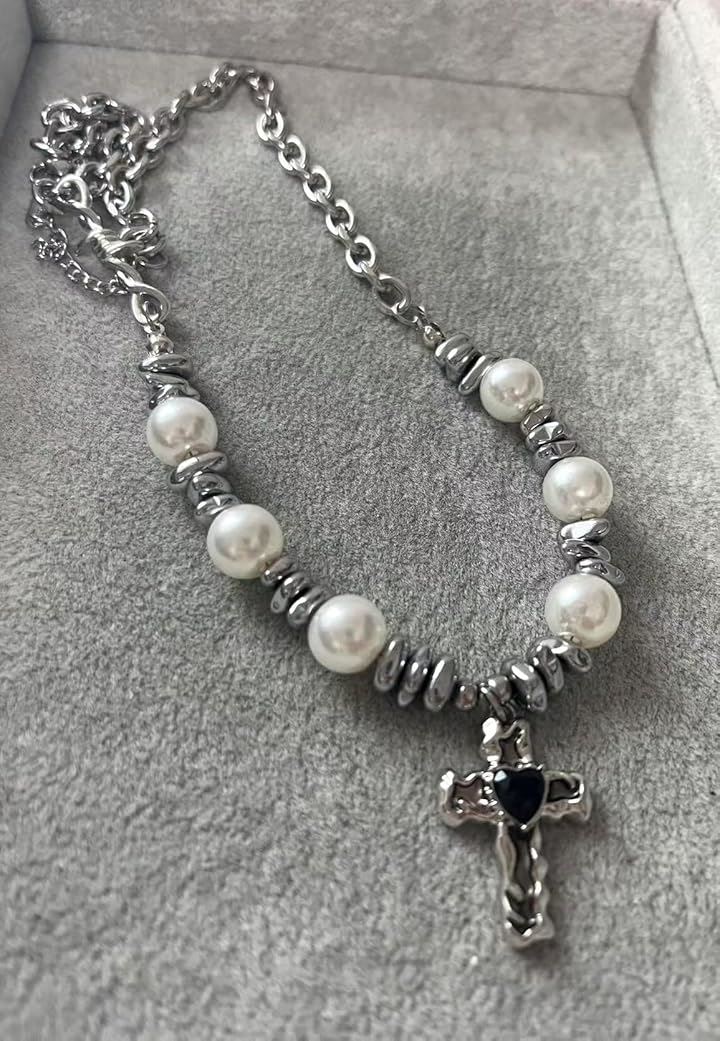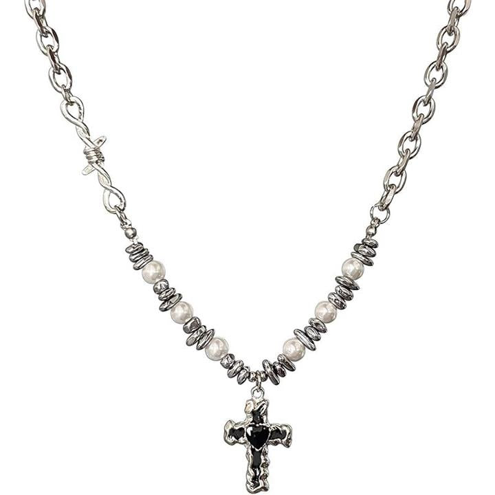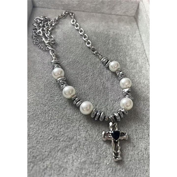 ネックレス 十字架 クロス パール メタルネックレス メンズ レディース アジャスターチェーン付き フォルテ おしゃれ カジュアル かっこいい アクセサリー