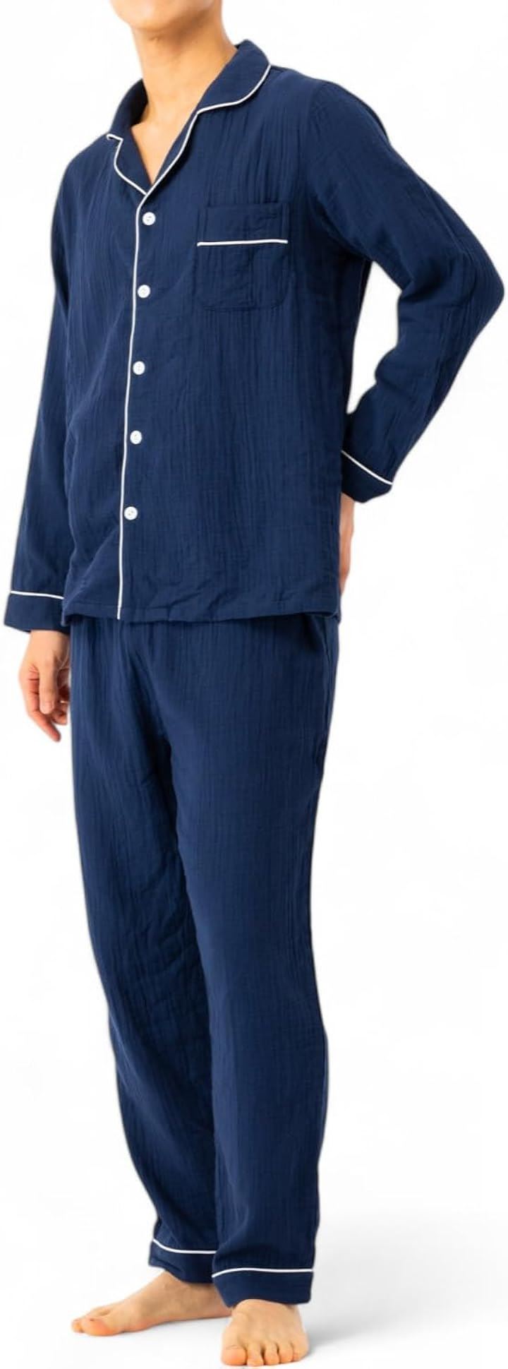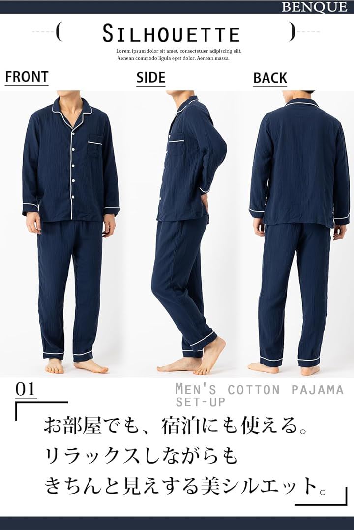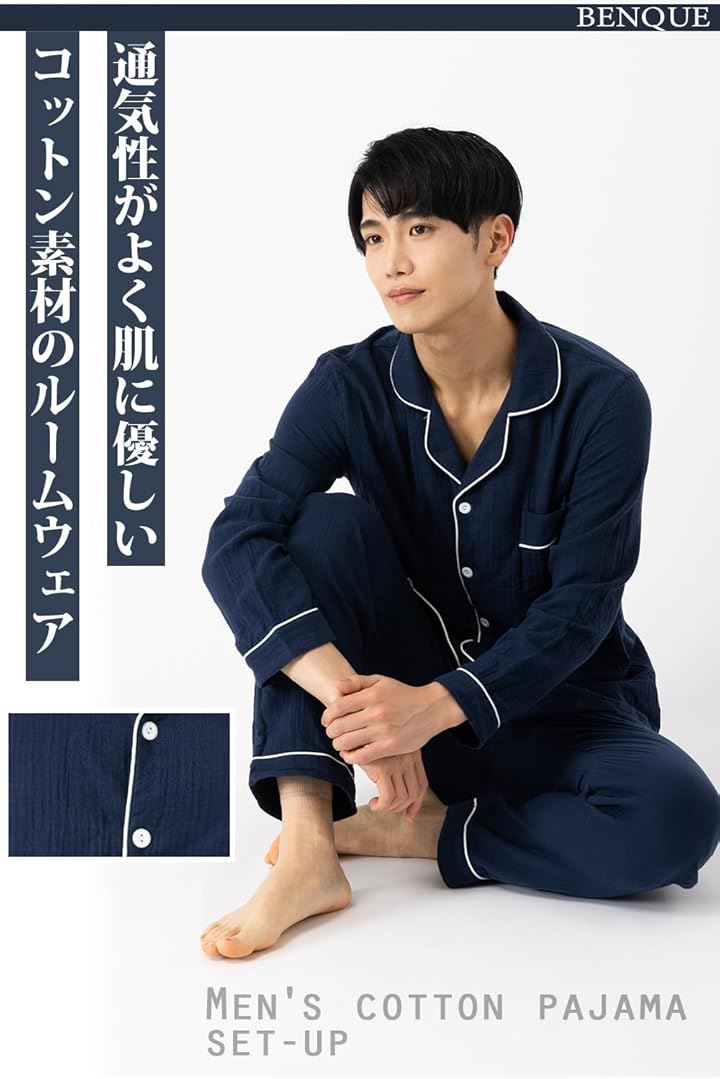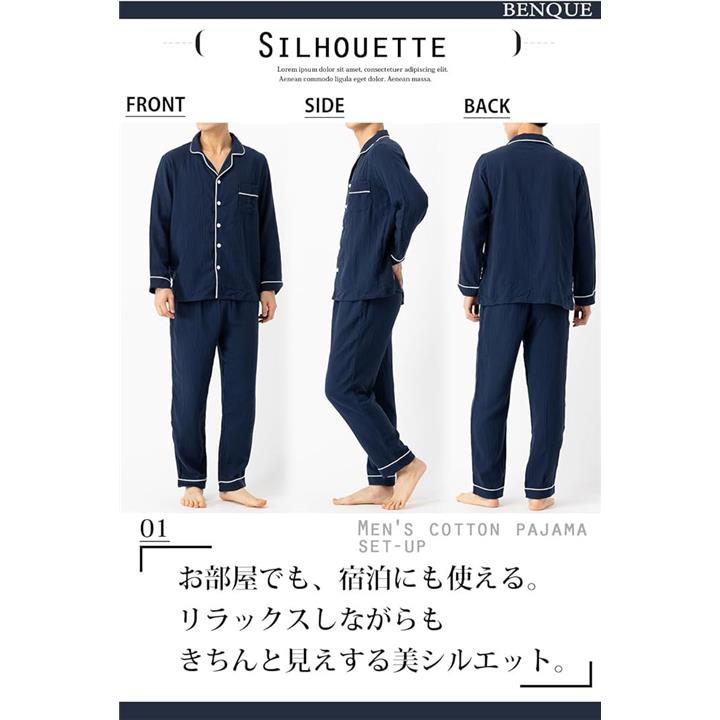 柔らかな肌触り パジャマ 長袖 綿100 ガーゼ 上下セット 春 おしゃれ パジャマセット 寝巻き 入院 メンズパジャマ 綿100% 春秋