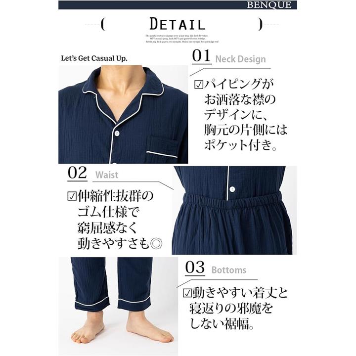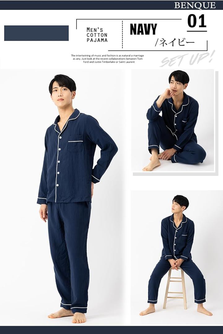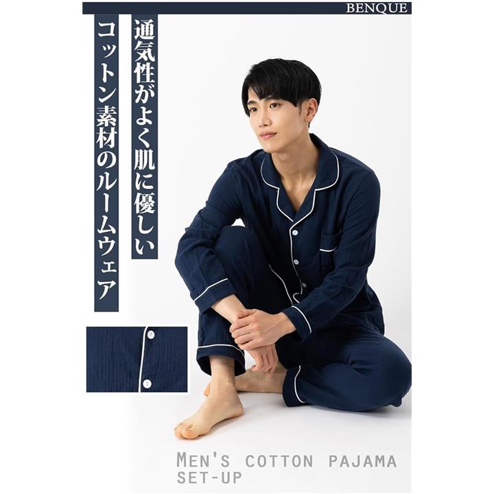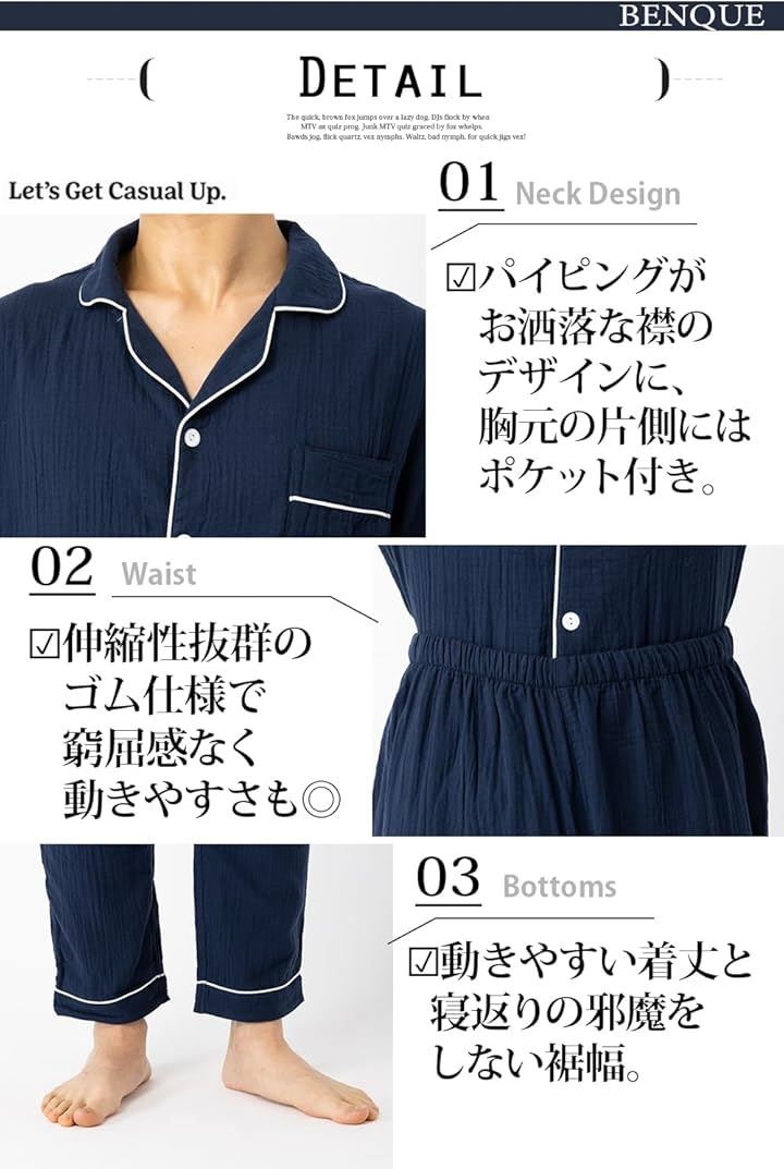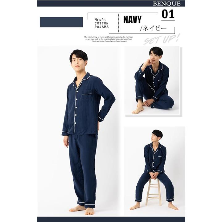 柔らかな肌触り パジャマ 長袖 綿100 ガーゼ 上下セット 春 おしゃれ パジャマセット 寝巻き 入院 メンズパジャマ 綿100% 春秋