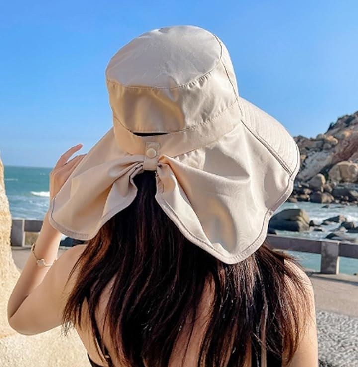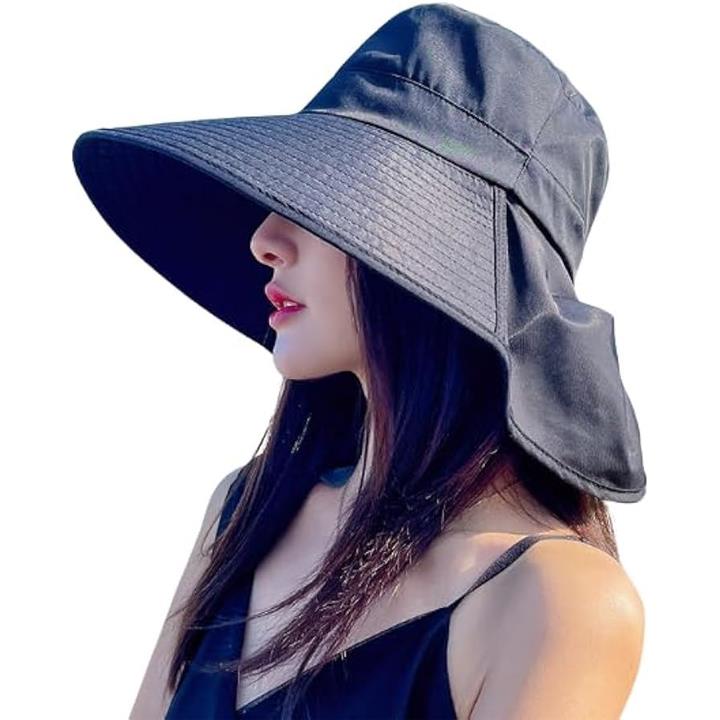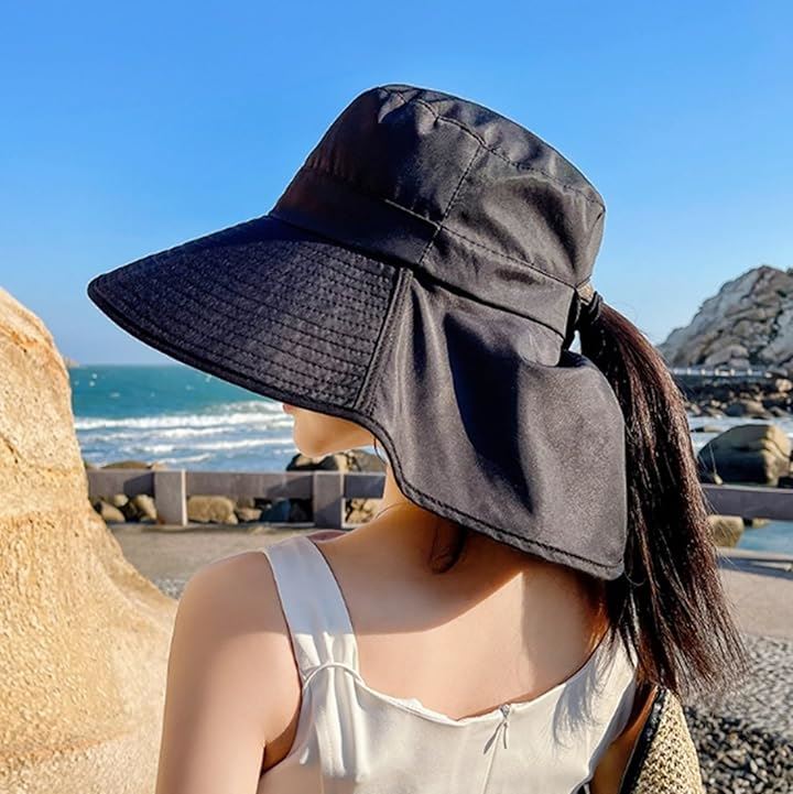 つば広 ハット UVカット 帽子 ポニーテール穴付き 紫外線 日焼け防止 フリーサイズ レディース あご紐付き ネックシェード サイズ調整 ネックカバー 日除け サファリハット バケハ キャップ バケットハット ハンチング サンハット