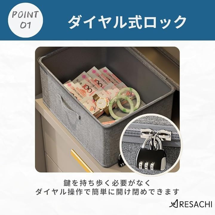 鍵付き 収納ボックス 貴重品ボックス 折りたたみ ダイヤル錠
