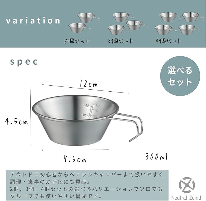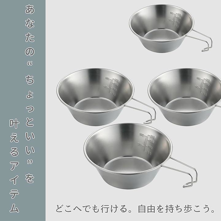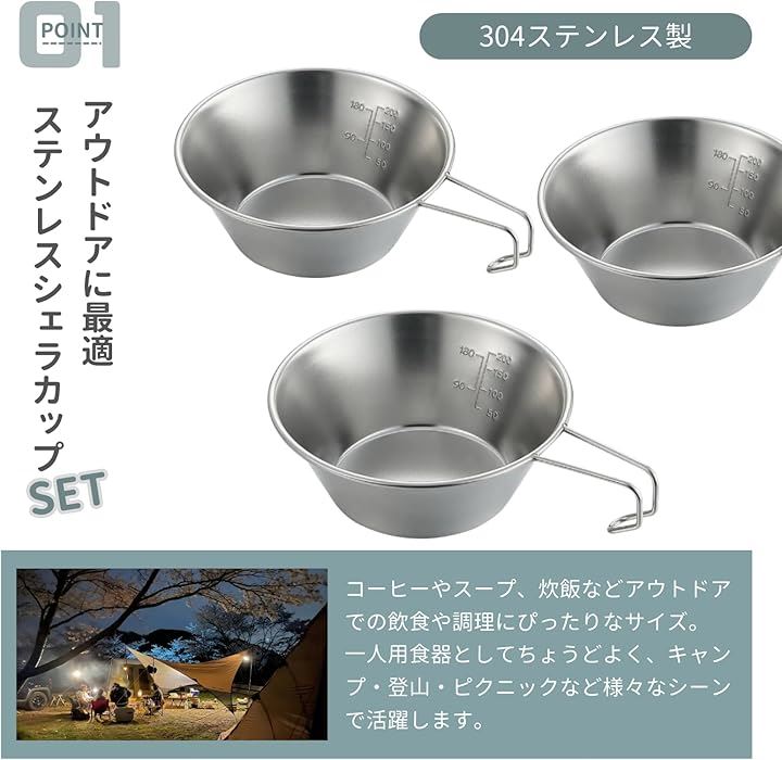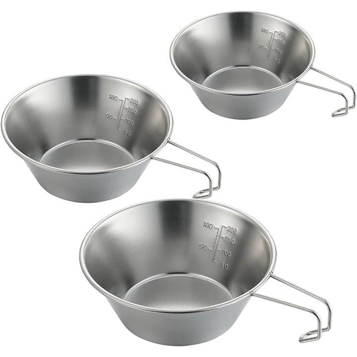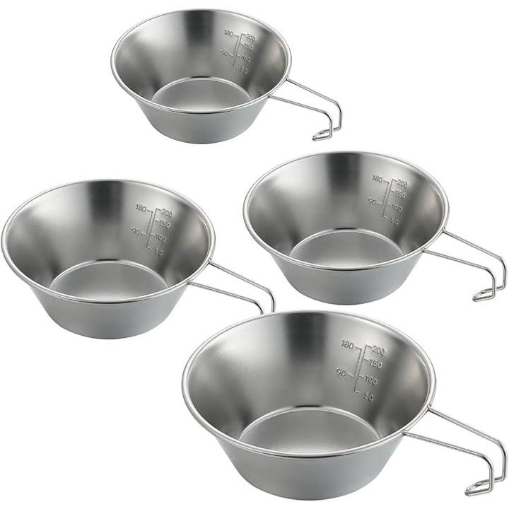 シェラカップ セット 300ml 304ステンレス 直火対応 炊飯OK 片手ハンドル アウトドア キャンプ用 クッカー コンパクト 軽量 丈夫