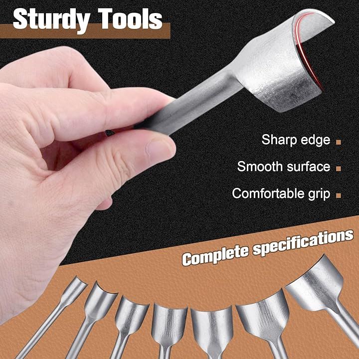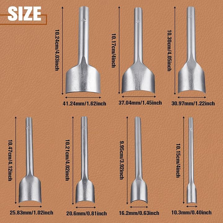 7個 レザーカッター 半丸切りパンチツールキット 半円カッター diyカッターパンチ レザー半丸ポンチ 革カッターツール 弧状エッジ ハーフラウンド クラフト ベルト 財布