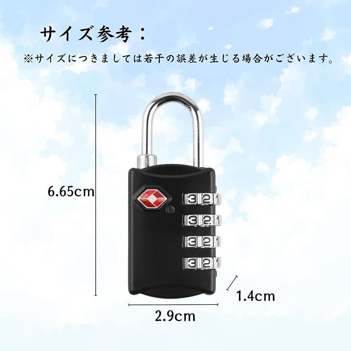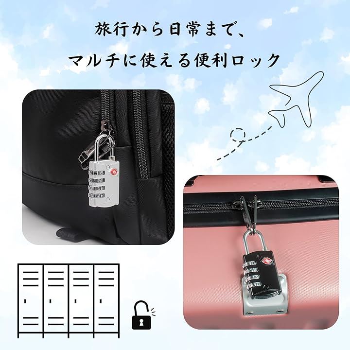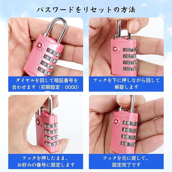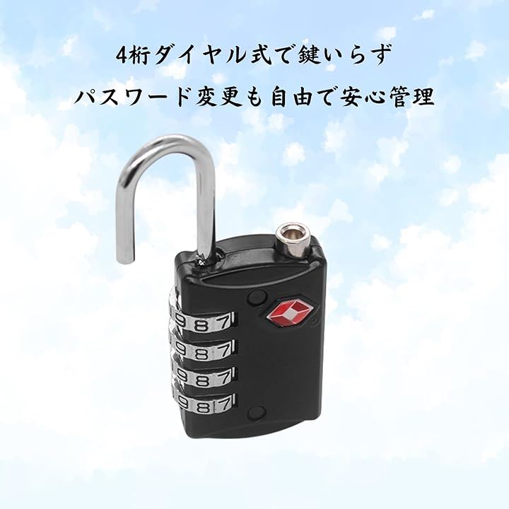 ロック 南京錠 4桁ダイヤル式 暗証番号ロック 海外旅行対応 多用途 スーツケース バッグ用