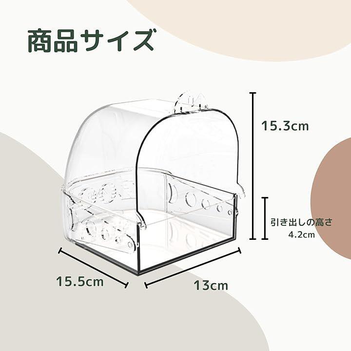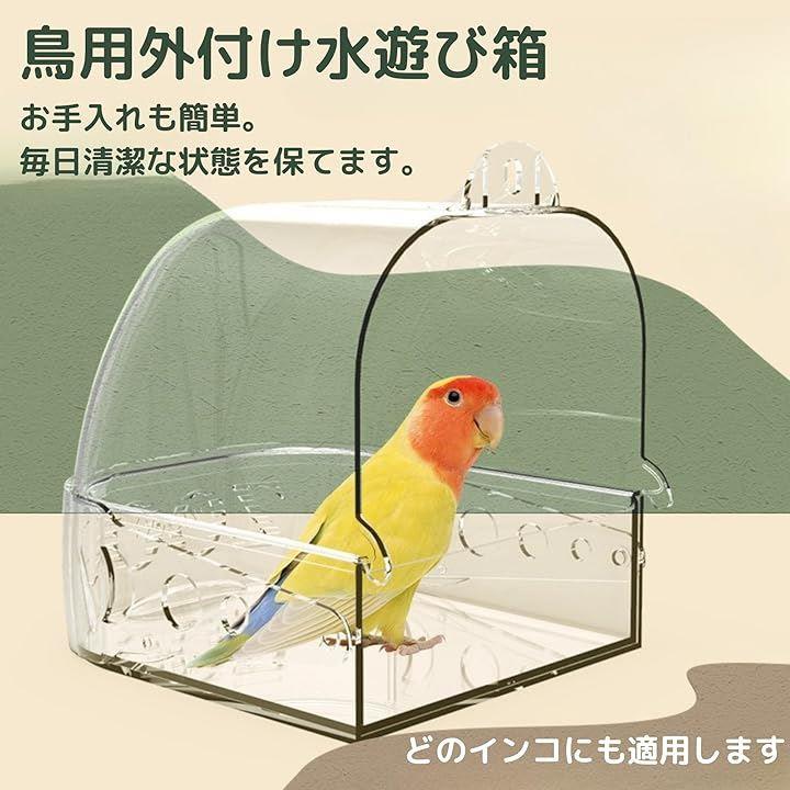 鳥用水浴び容器 バードバス 水入れ容器 ケージ 透明素材 鳥用品 浴槽 水漏れを防ぐ 文鳥 インコ 水遊び 引き出し付き 多機能 お風呂 トイレ 餌入れ ペット用品 暑さ対策 外付け ストレス軽減