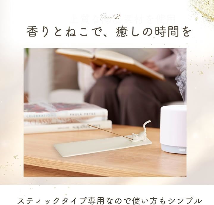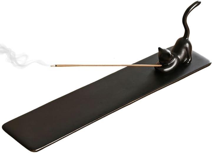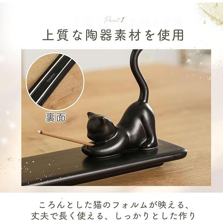 お香立て 猫モチーフ 線香立て インセンスホルダー スティック香炉 陶器製 モダン レトロ ねこ ネコ インテリア雑貨 癒しグッズ