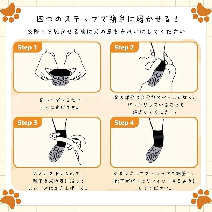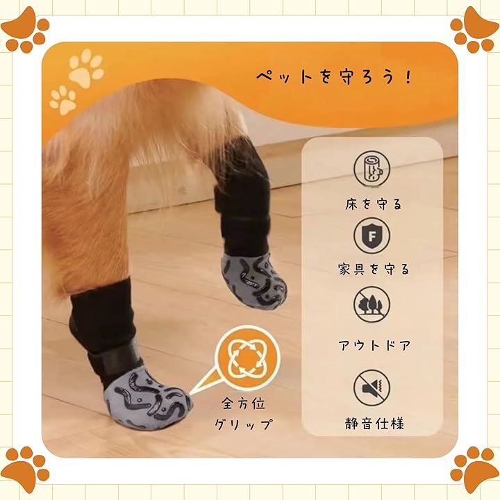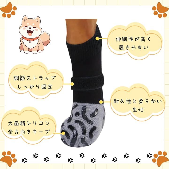 犬 靴下 滑り止め 犬用靴下 脱げにくい テープ付き ペット 防寒 転倒防止 通気性 伸縮性 4個セット