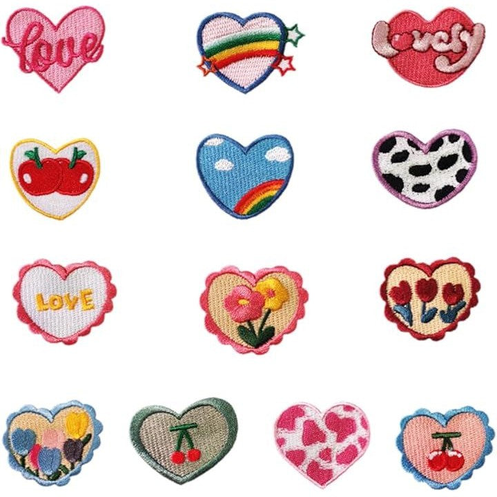 ワッペン 13枚セット シールタイプ 貼るだけ ハート 保育園 幼稚園 小学校 アイロン不要 可愛い