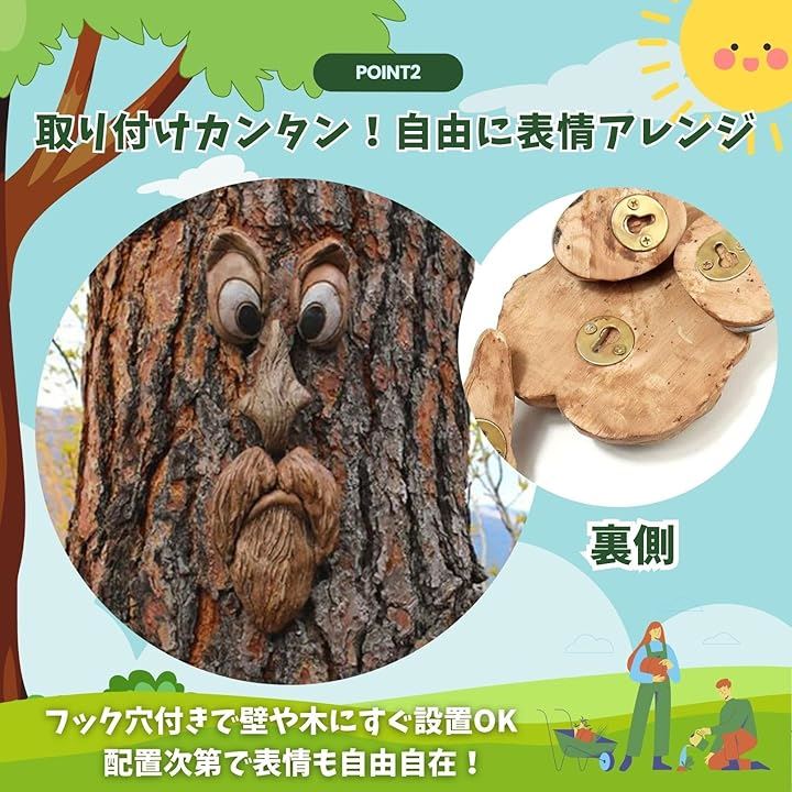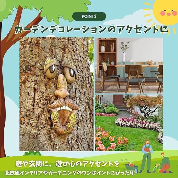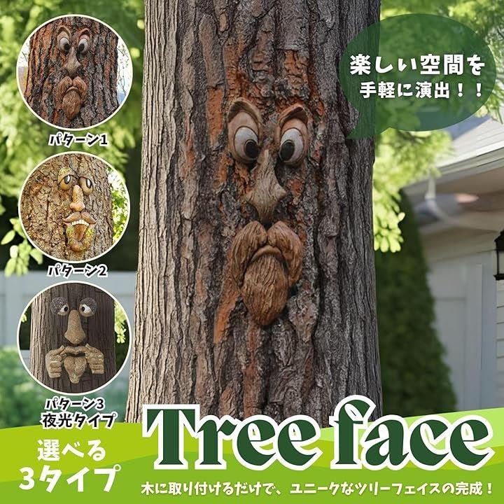 木の顔 飾り ガーデニング雑貨 ツリーフェイス オブジェ 樹木デコレーション ガーデンオーナメント 壁掛け 置き物 樹脂製 面白い 庭アート 装飾 北欧風