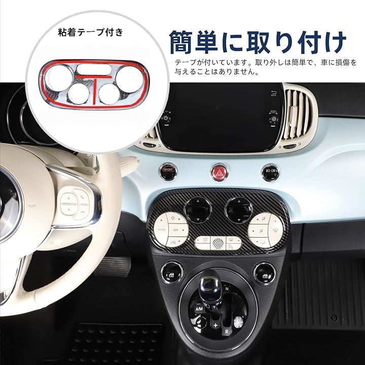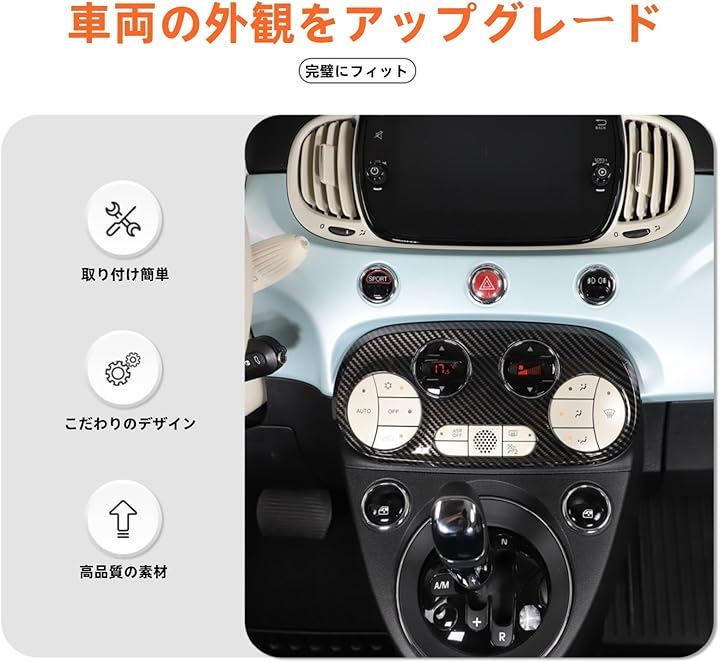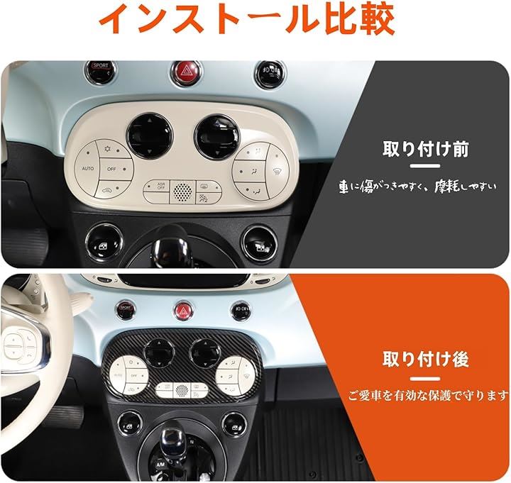 互換品フィアット 500 2016年~現行専用 ボタンカバーパネル センターコンソールカバー フレーム フレームステッカー エアコンスイッチパネル コントロール 保護カバー インテリアパネル 内装パーツ カー用品 車用アクセサリー ABS製