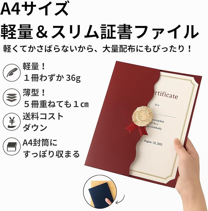 証書ファイル 5冊セット A4 賞状ファイル 賞状ホルダー スポーツ大会 修了証 表彰状 証書ホルダーa4 賞状入れ 軽量 薄型 6色 紙製 まとめ買い おしゃれ 習い事 進級祝い