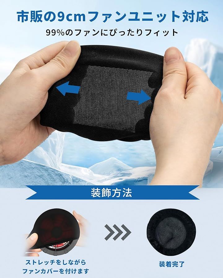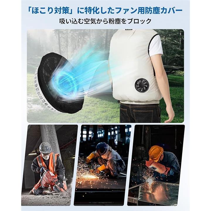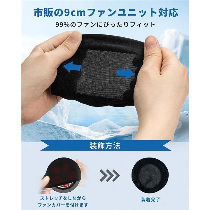 互換品 互換用 空調作業服用 防塵フィルター 8枚入り ファンカバー 防塵カバー ポリエステル製 粉塵 汚れ 防止 伸縮性 洗って使える 長持ち 9cmのファンに対応 ブラック