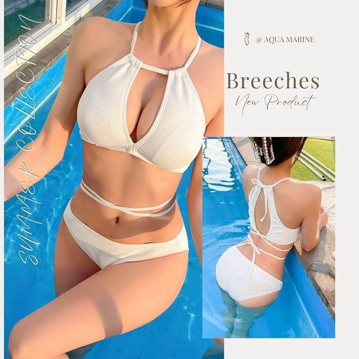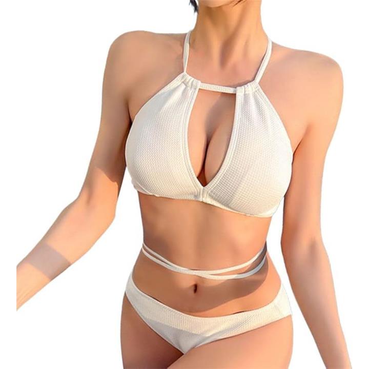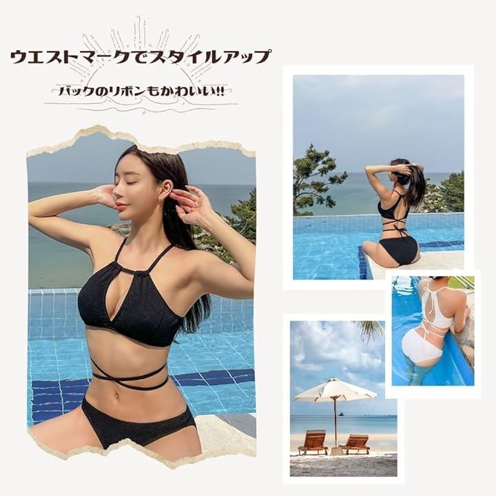 クロスストラップビキニ レディース ホルターネック リブ素材 バストアップ効果 美谷間 水着セット 大人可愛い 海 プール 旅行 セクシー リゾート