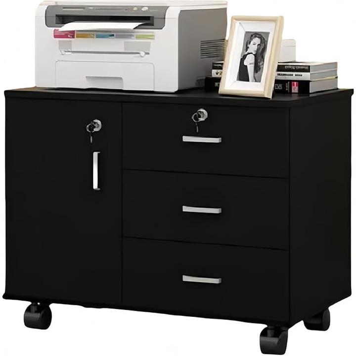 デスクワゴン サイドワゴン キャビネット 袖机 オフィスワゴン デスクサイド 完成品 鍵付き キャスター付き 扉付き チェスト デスク下 収納 3段オールロック 大容量