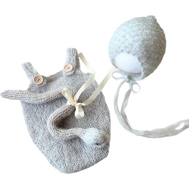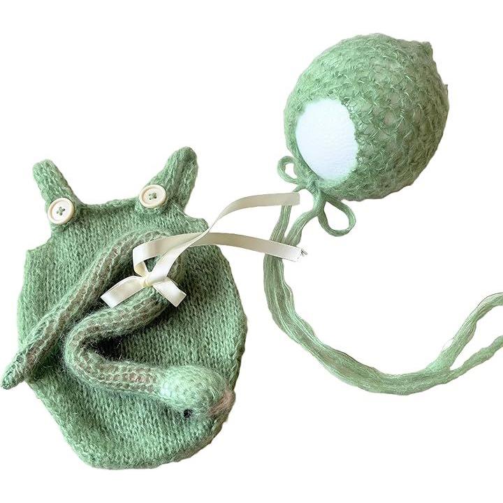 巳年 ニューボーンフォト用 透かし編みヘビ帽子 ロンパースセット モヘア素材