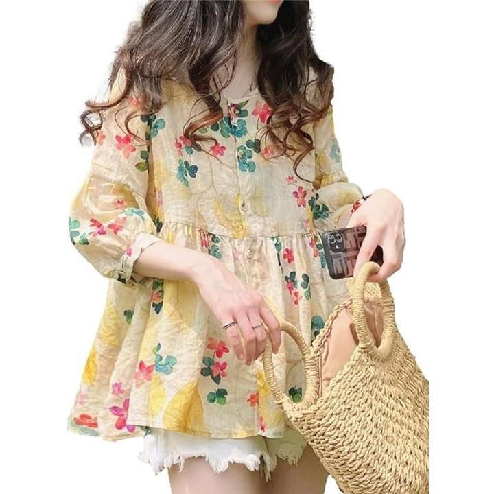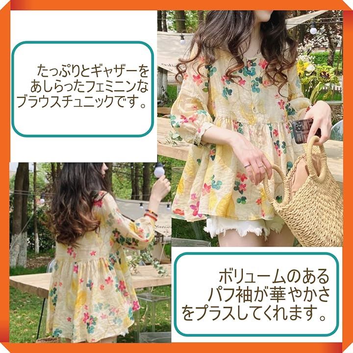 ニブンノイチプラス チュニック シャツ ブラウス 花柄 プルオーバー 可愛い お洒落 レディース