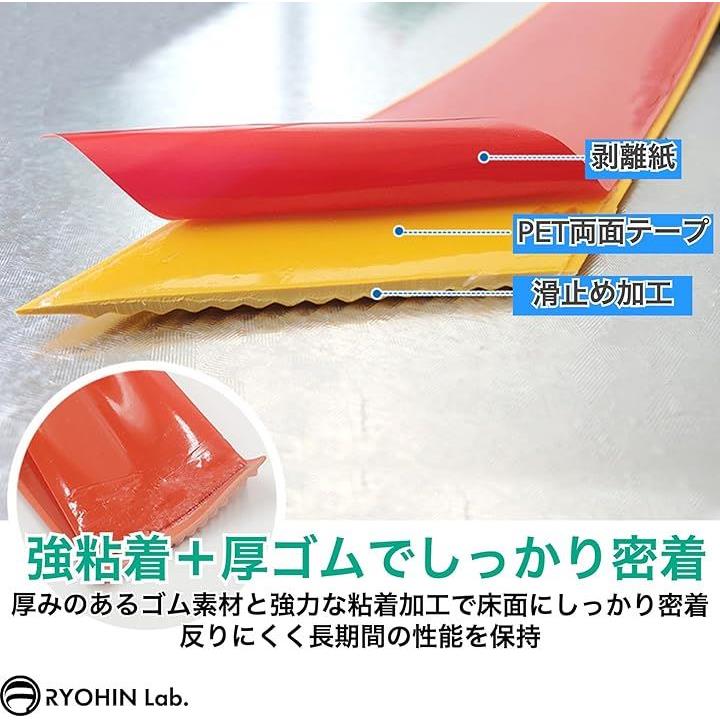 「強粘着+3mm厚ゴムでしっかり密着」厚みのあるゴム素材と強力な粘着加工で、床面にしっかり密着。