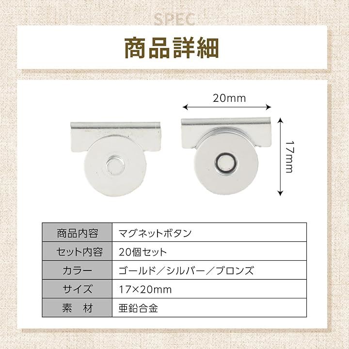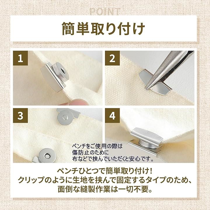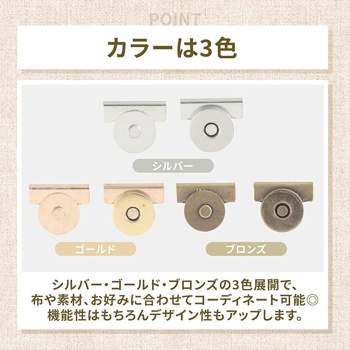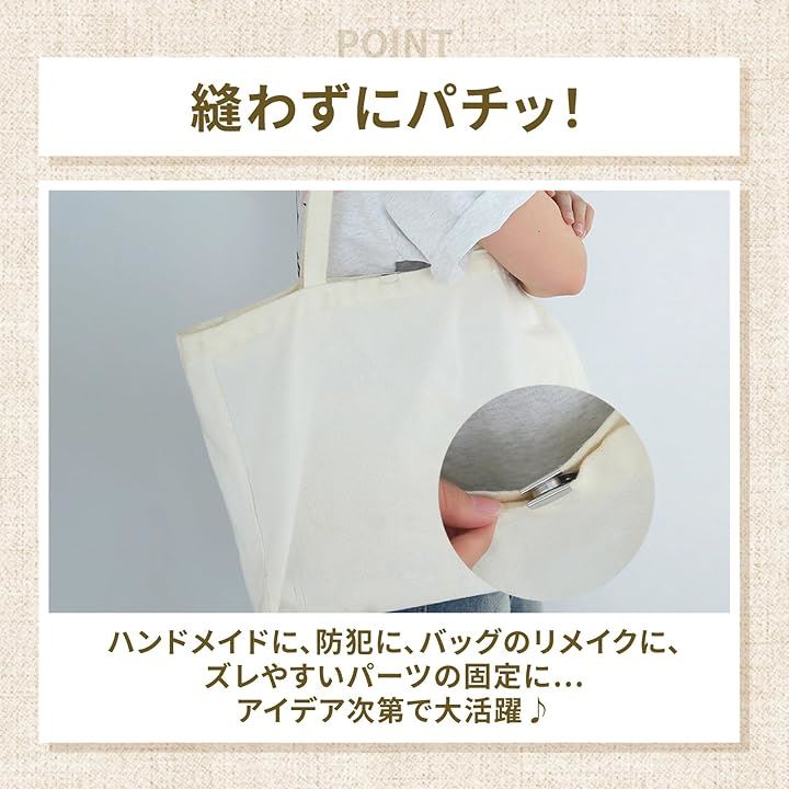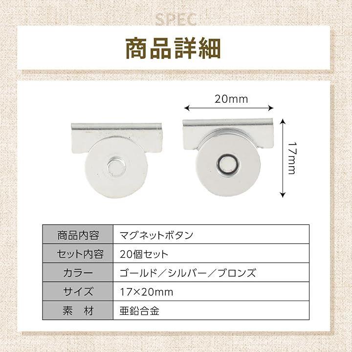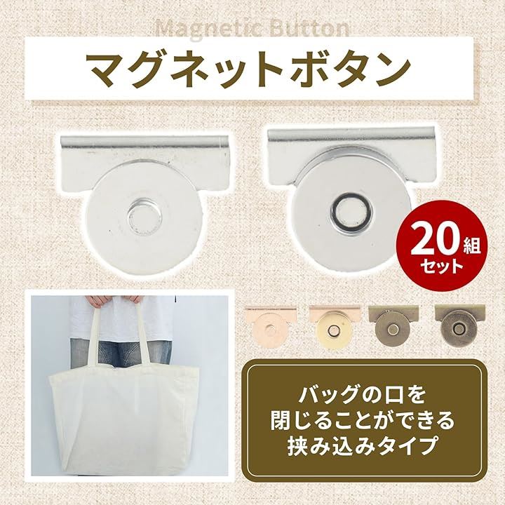 マグネットホック 20組入 挟んで取り付けタイプ 簡単後付け ハンドメイド用 鞄 バッグ用 ボタン