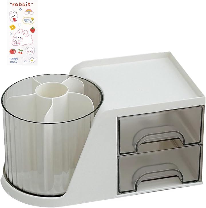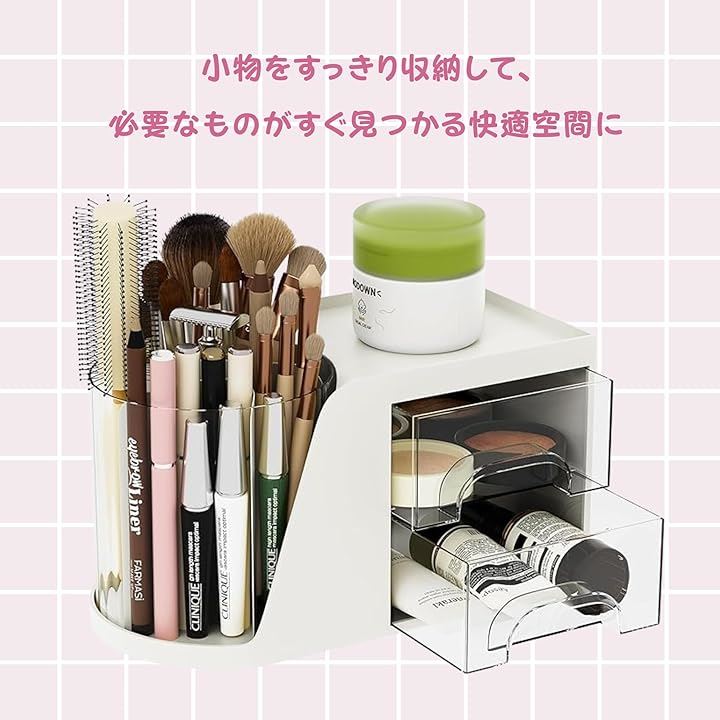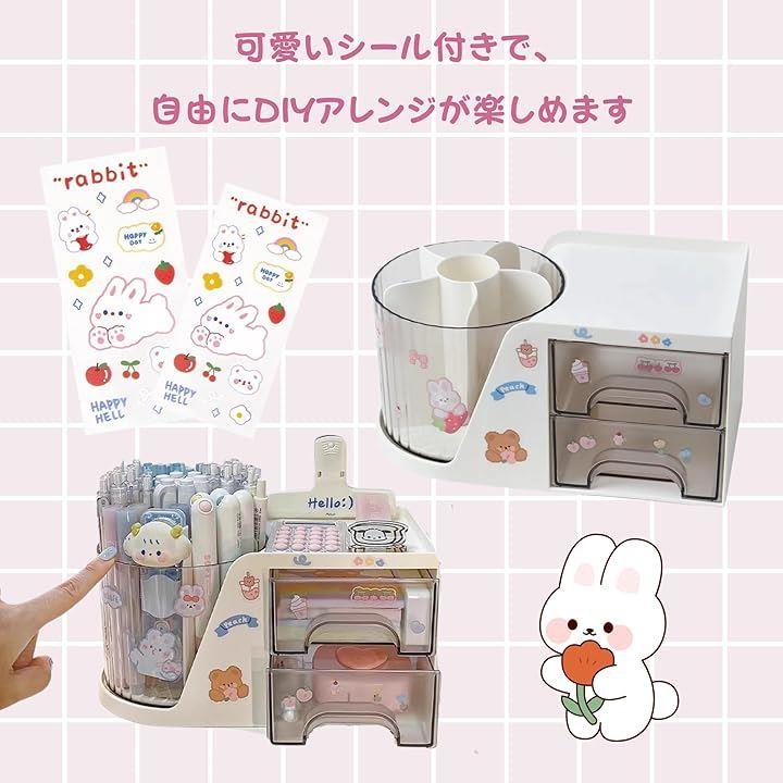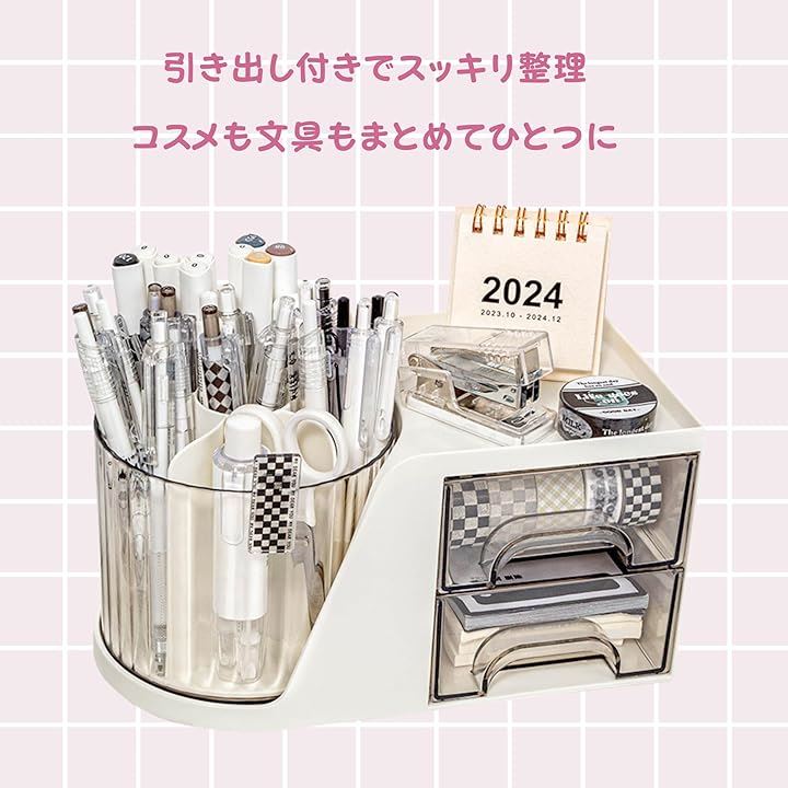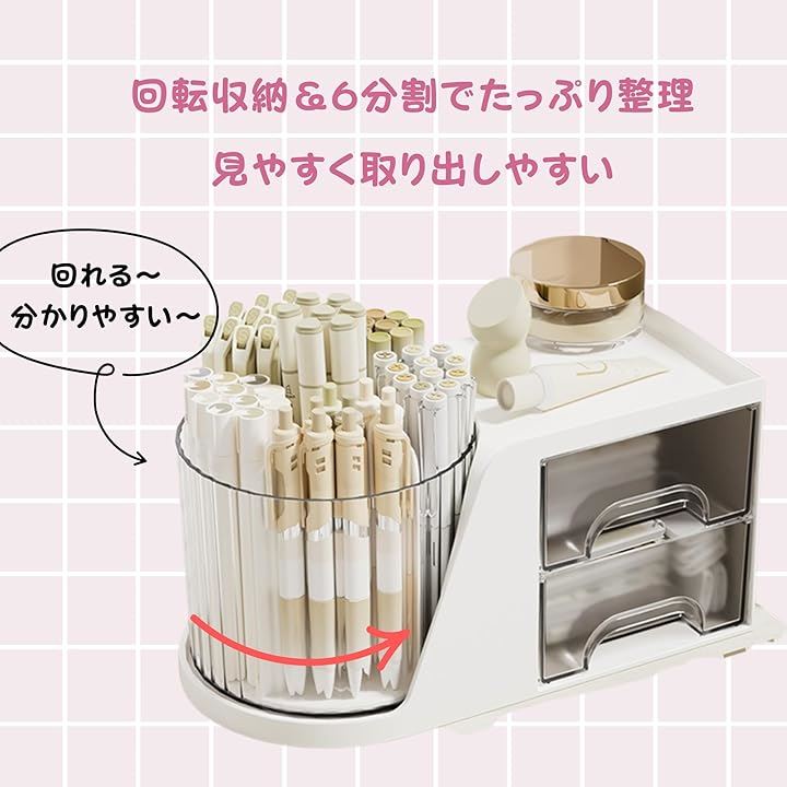 回転 卓上収納ボックス オーガナイザーバッグ ペンホルダー 引き出し付き 多機能 ケース 大容量 分類収納