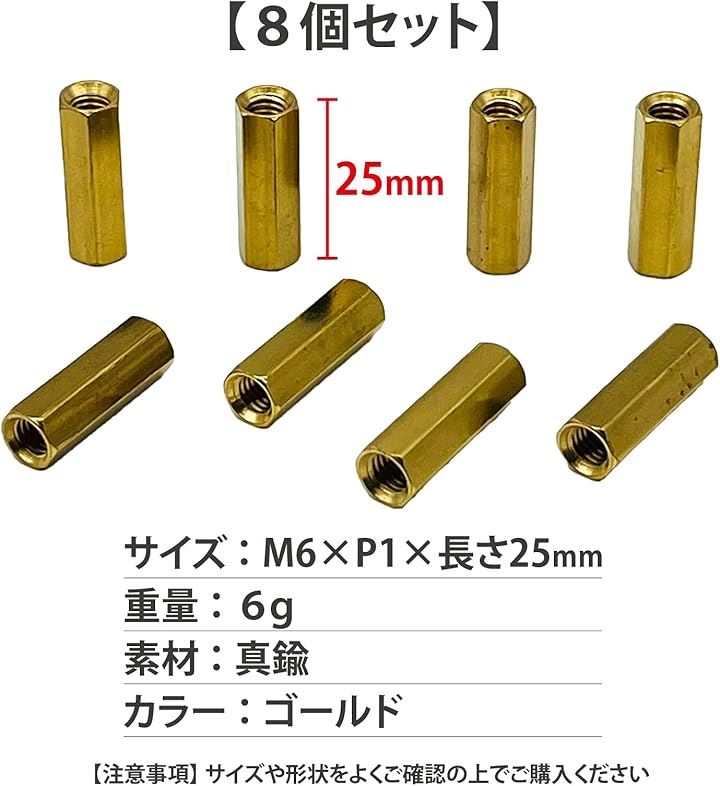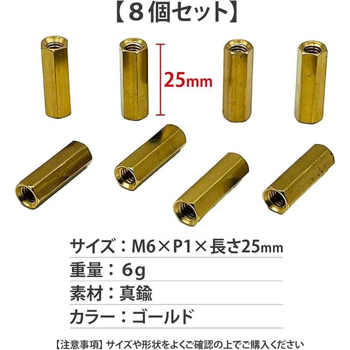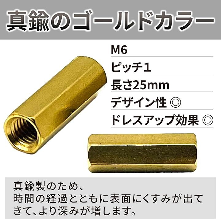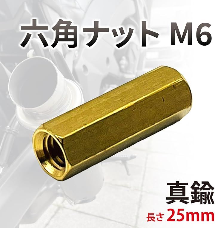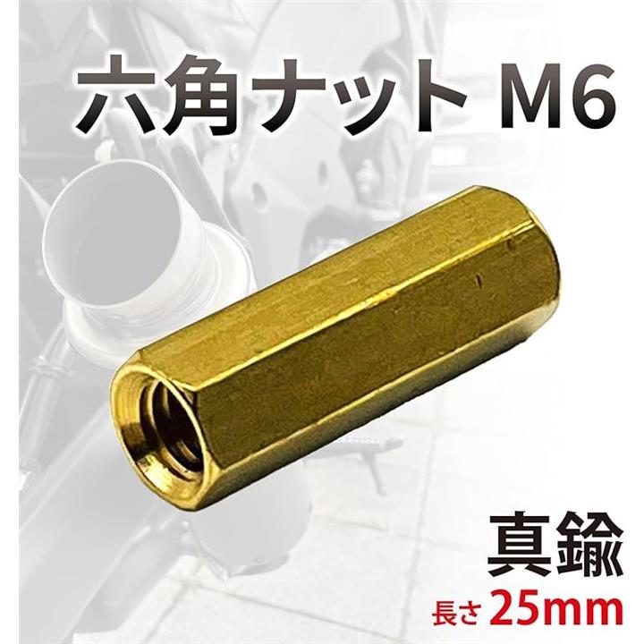 互換品 ナット M6 六角ナット 真鍮 ロングナット マフラーナット 長ナット 高ナット バイク 25mm ゴールド