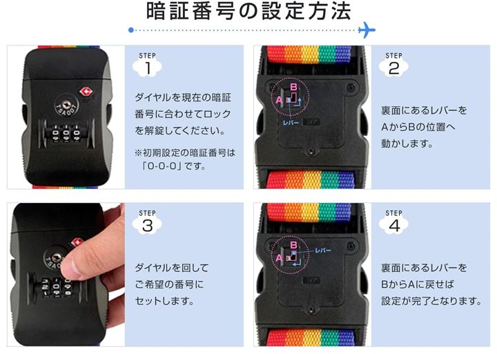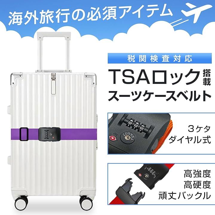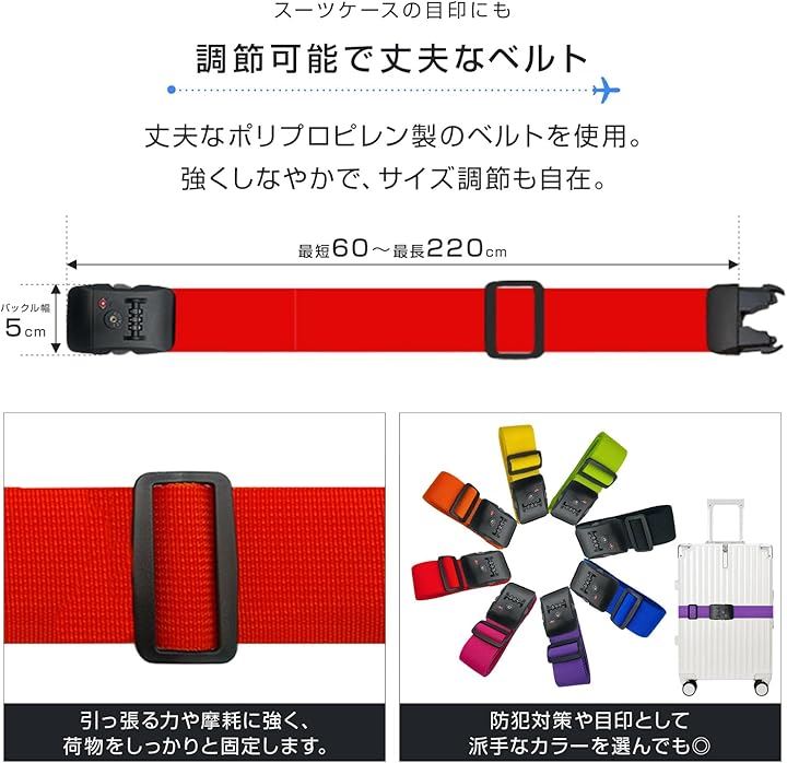 スーツケースベルト TSAロック ダイヤル式 I字型 日本語説明書 長さ調整可能 軽量タイプ キャリーケース目印 旅行 出張 荷崩れ防止