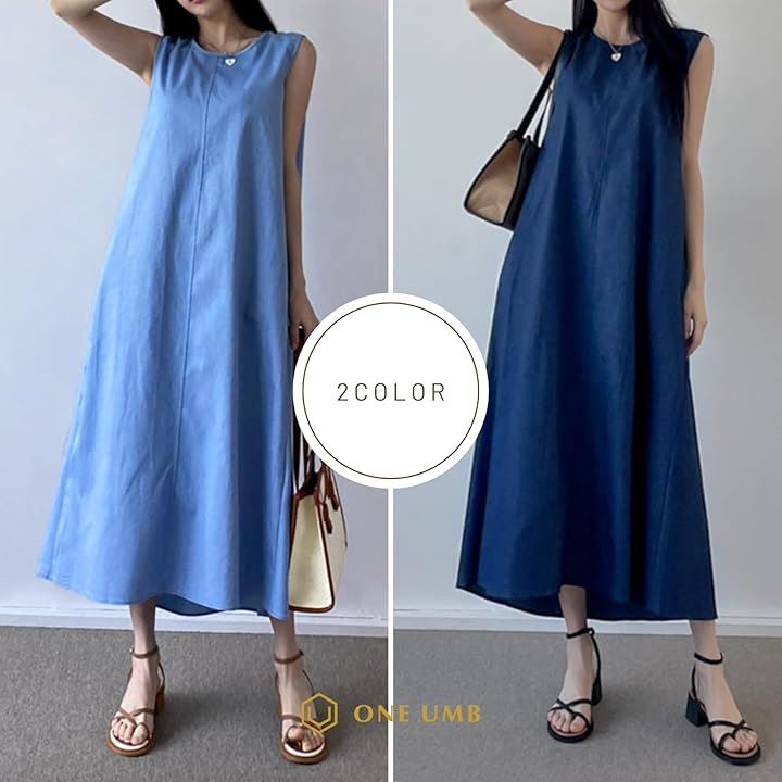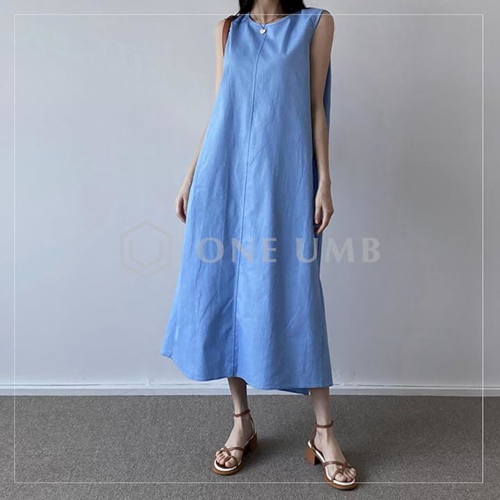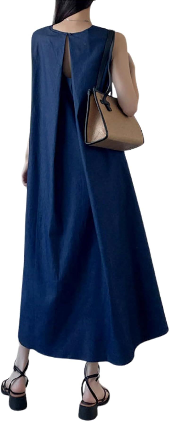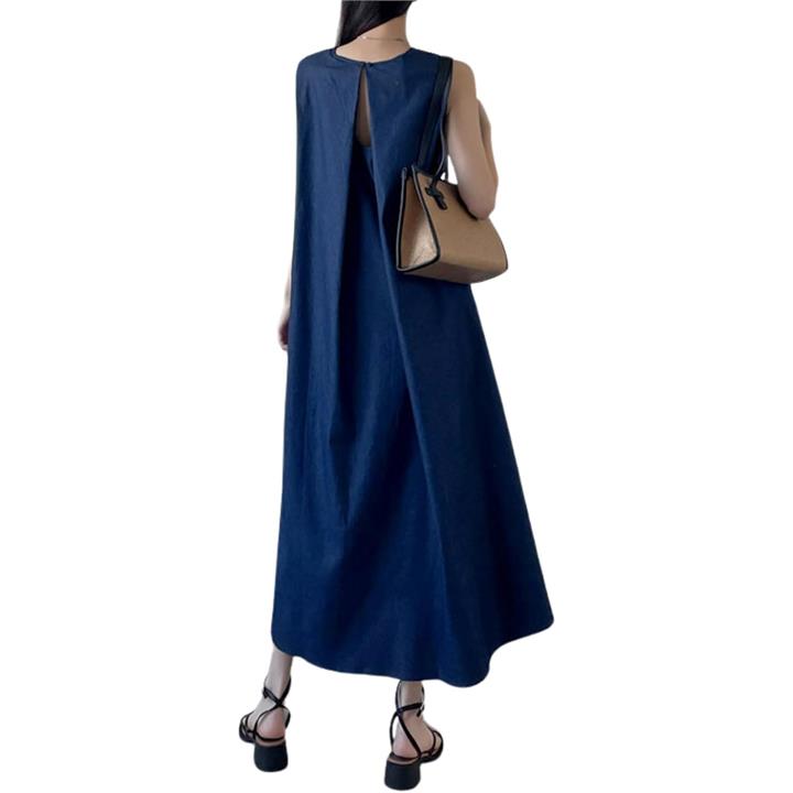 ノースリーブワンピース レディース 夏 ロング ゆったり ロングワンピース リゾートワンピース きれいめ デニム風