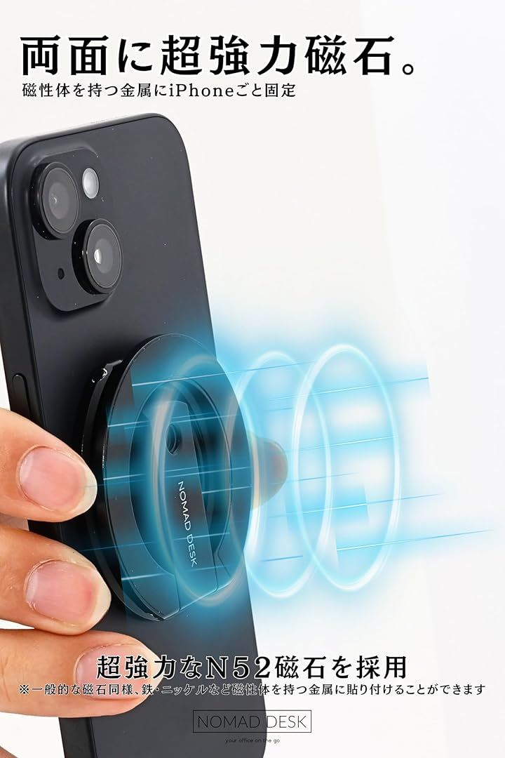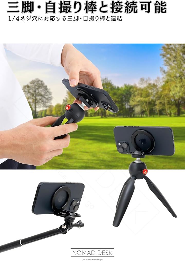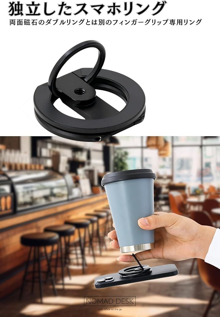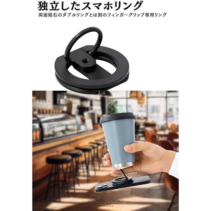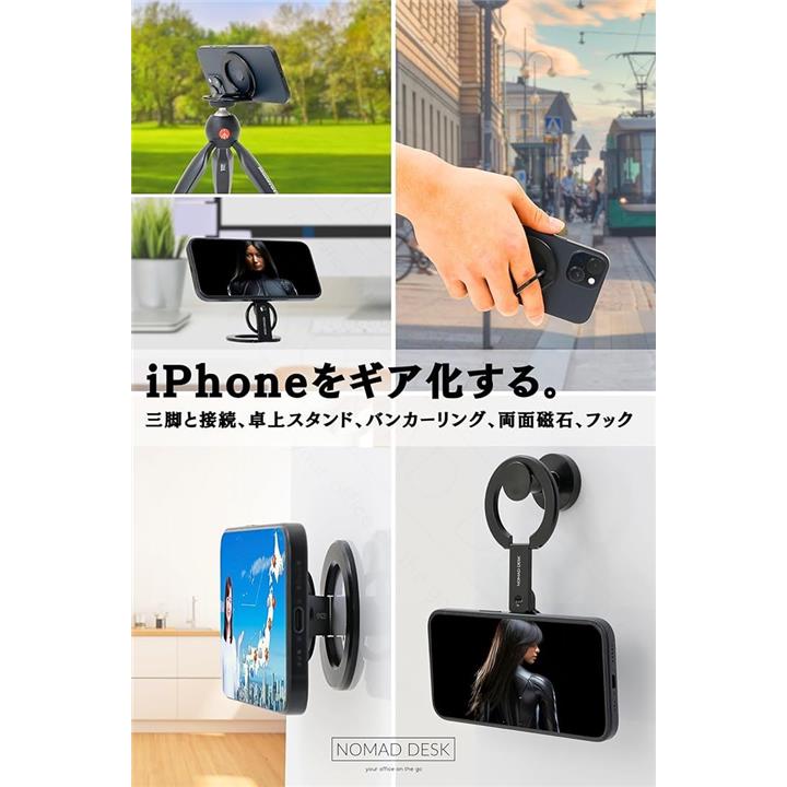 MagSafe対応 多機能 スマホリング スタンド 両面マグネット 三脚接続 2つの関節 軽量薄型 独立したバンカーリング