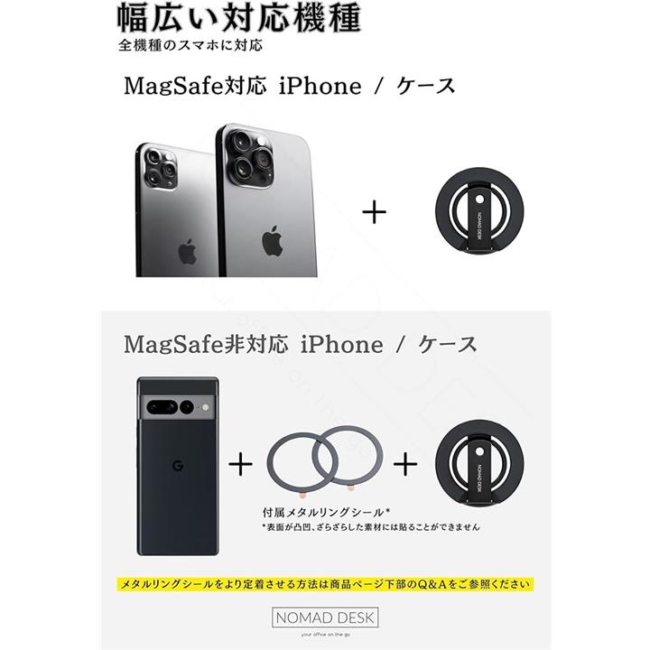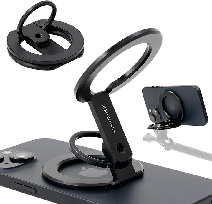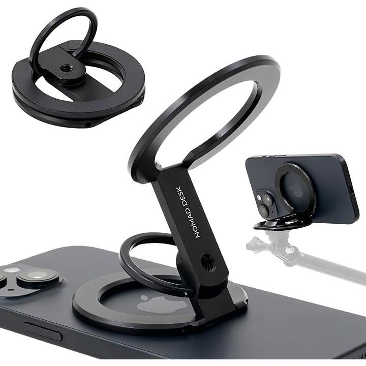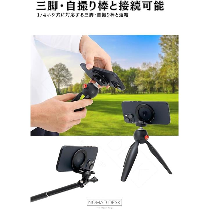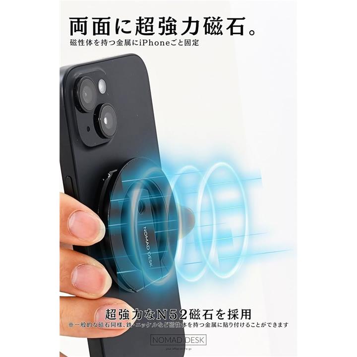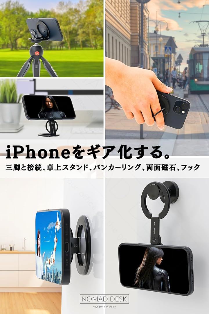 MagSafe対応 多機能 スマホリング スタンド 両面マグネット 三脚接続 2つの関節 軽量薄型 独立したバンカーリング