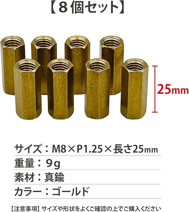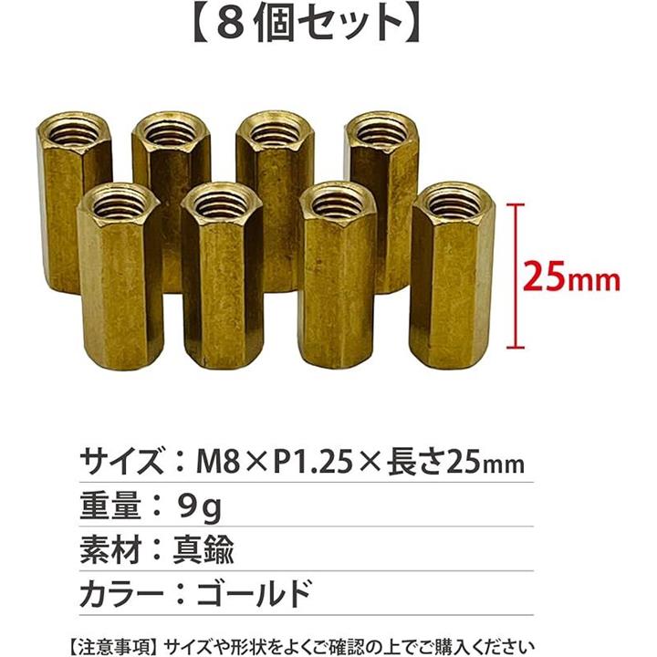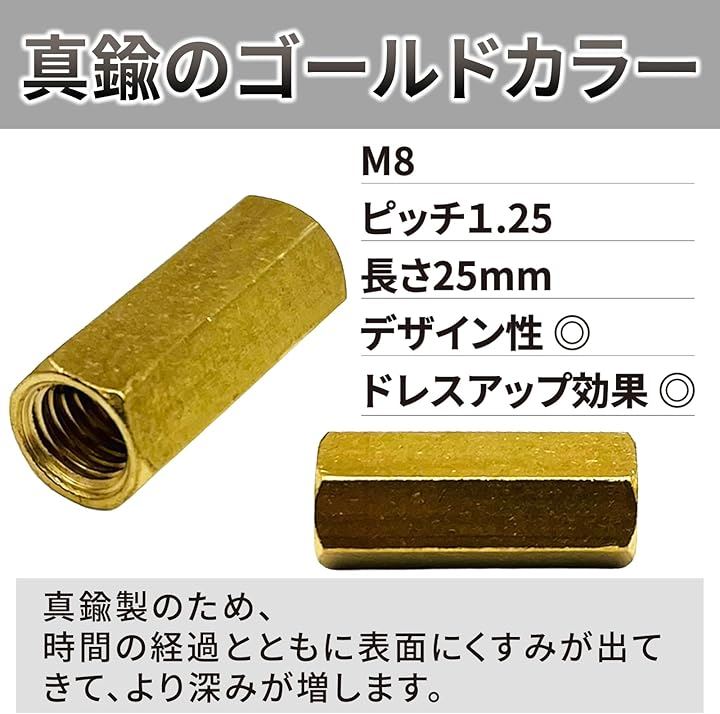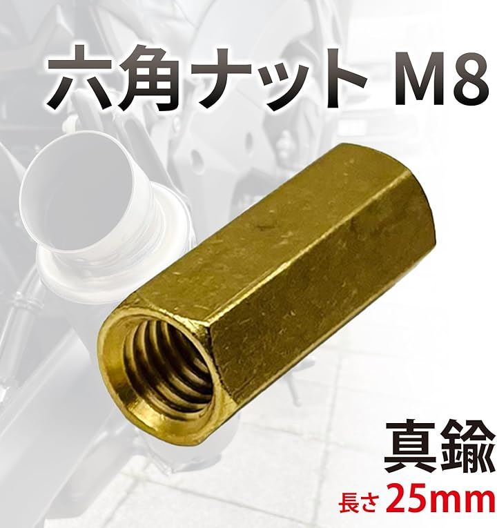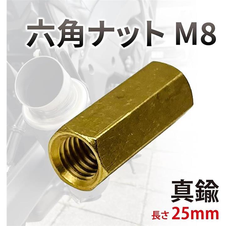 互換品 ナット M8 六角ナット 真鍮 ロングナット マフラーナット 長ナット 高ナット バイク 25mm ゴールド