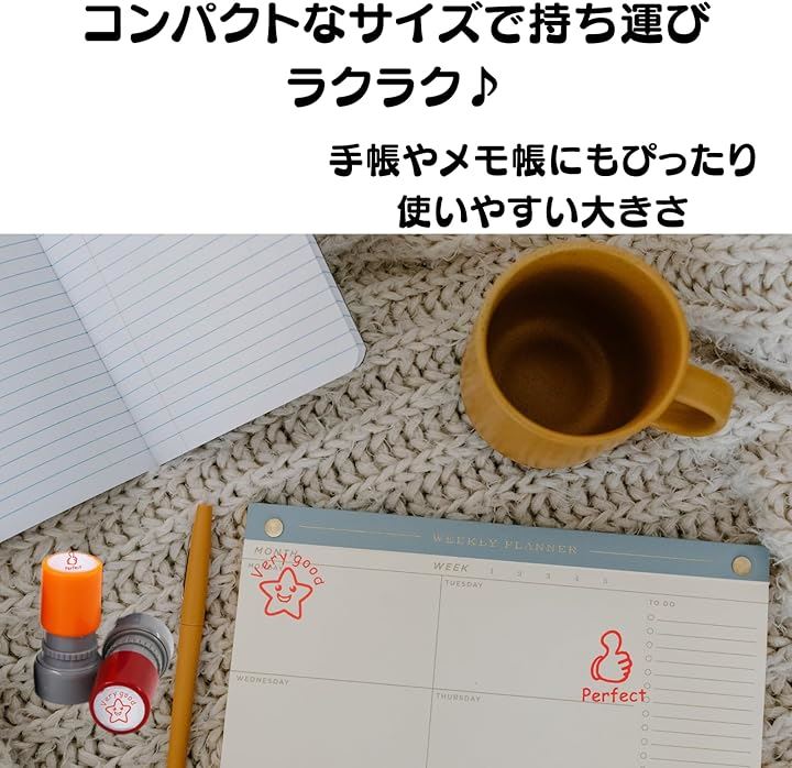 スタンプ ごほうび 浸透印 よくできました 見ました 手帳用 ハンコ 英語 文字入り 20mmサイズ かわいい評価印 Perfect&Very good