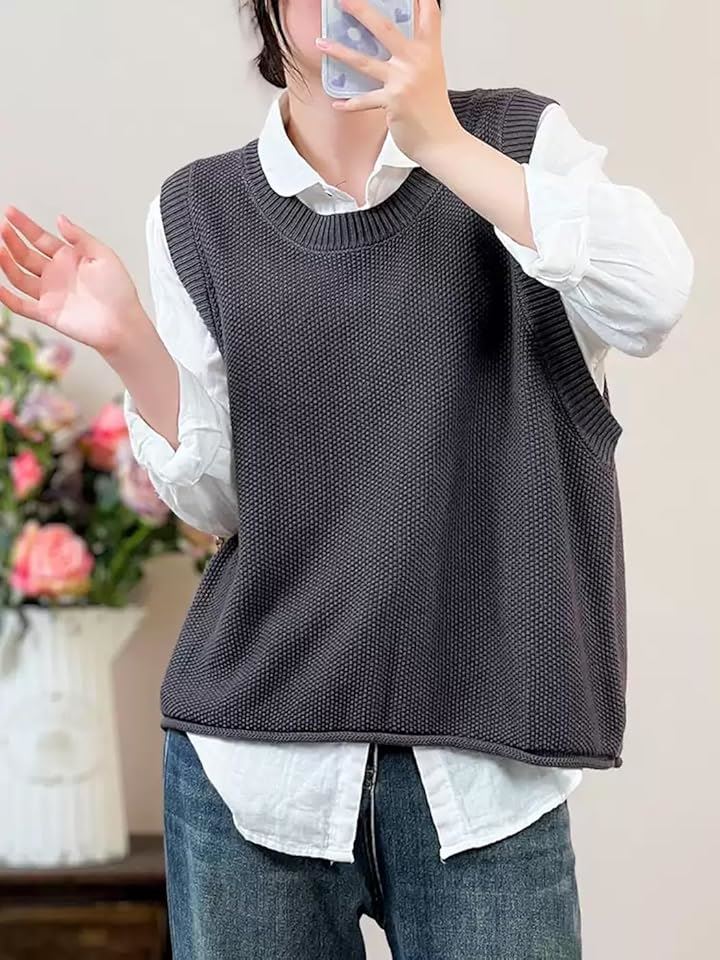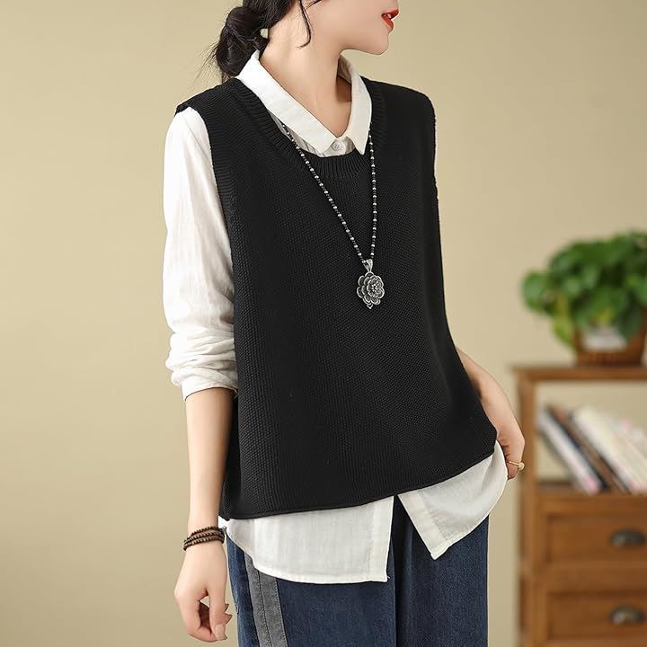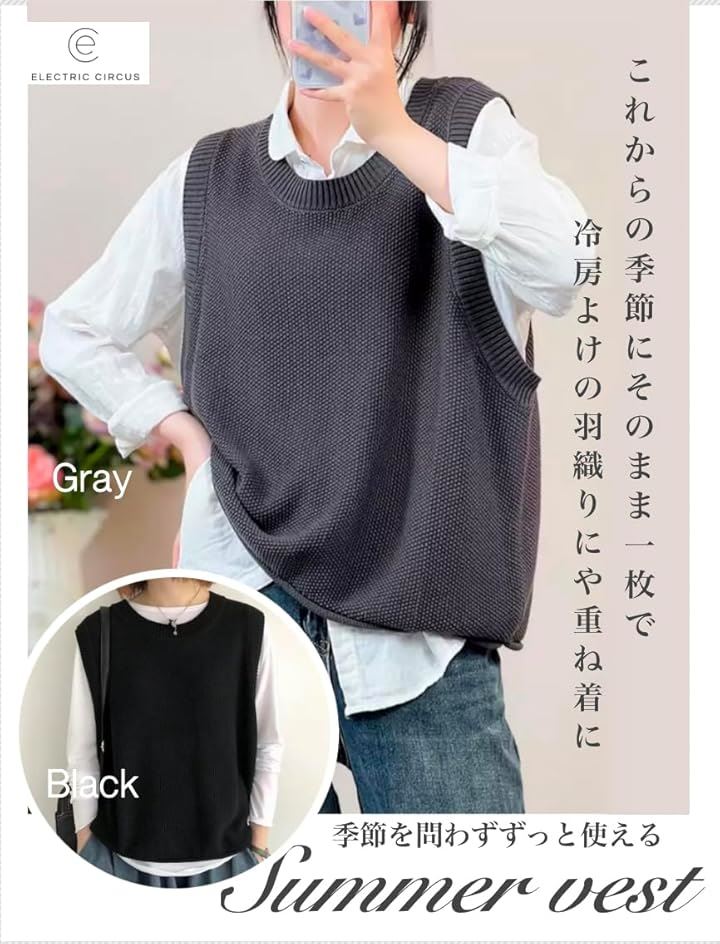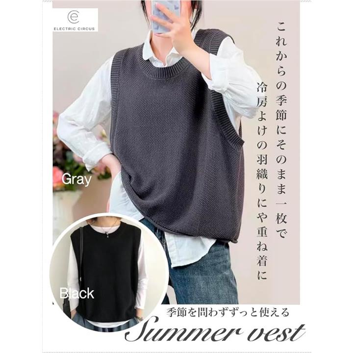 ベスト レディース 薄手 サマーベスト 体型カバー 着回し 重ね着 ニットトップス カットソー