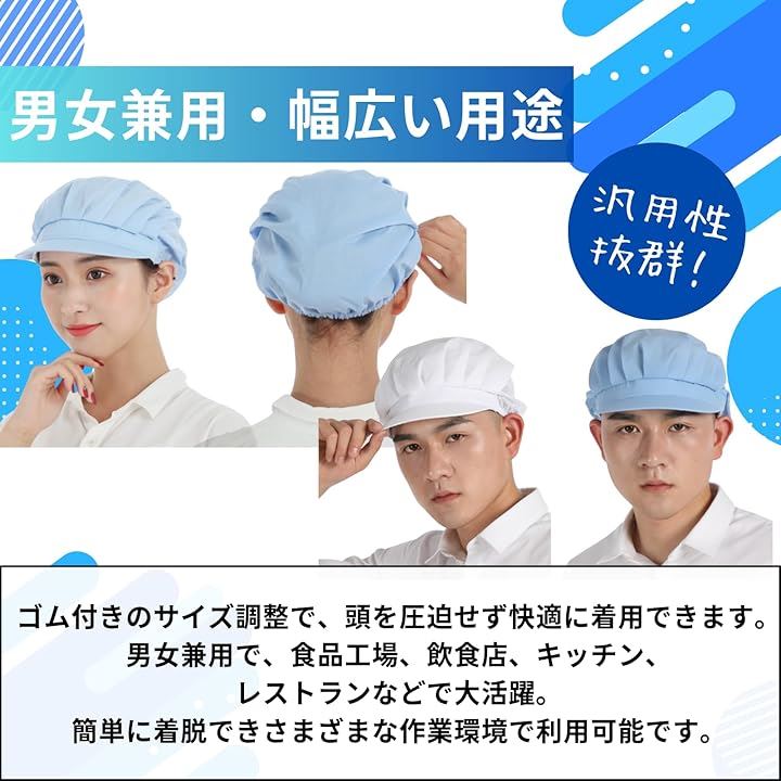 「男女兼用・幅広い用途」ゴム付きのサイズ調整で、頭を圧迫せず快適に着用できます。