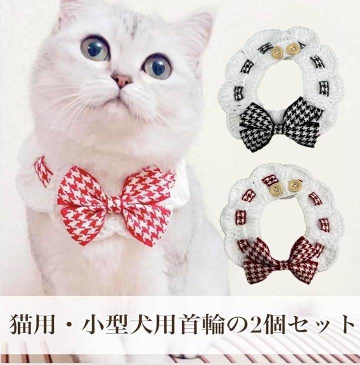 猫 2個セット 首輪 猫用 ペット バンダナ ビブ スカーフ 小型犬 チョーカー よだれかけ アクセサリー 飾り 小動物 ペットよだれかけ 犬よだれかけ ねこ ネコ リード
