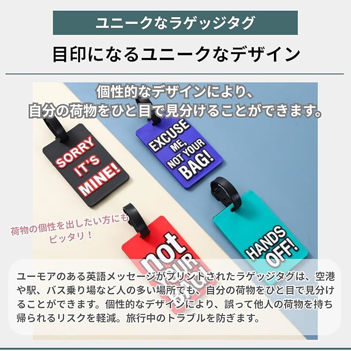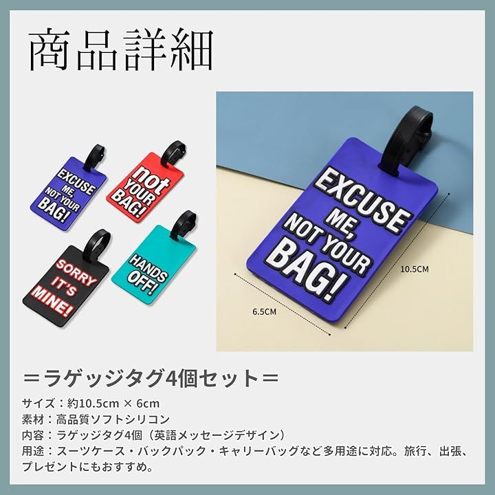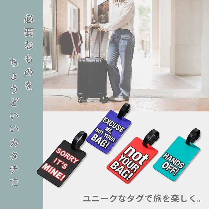 スーツケースタグ ネームタグ ラゲッジタグ 4枚セット 荷物識別 旅行用 名札 ラベル 柔らかい PVC 防水 軽量 丈夫 紛失防止