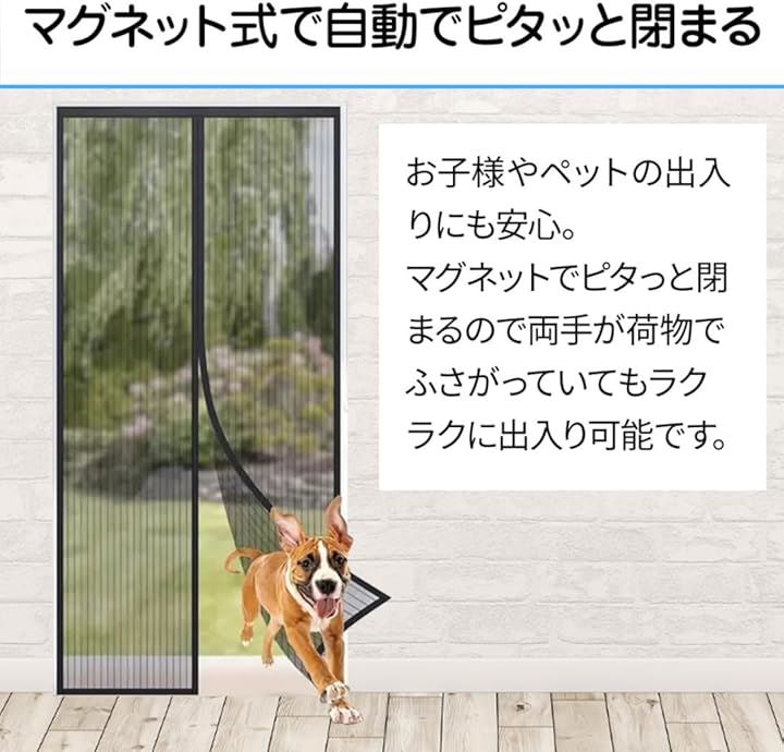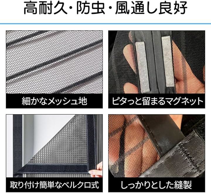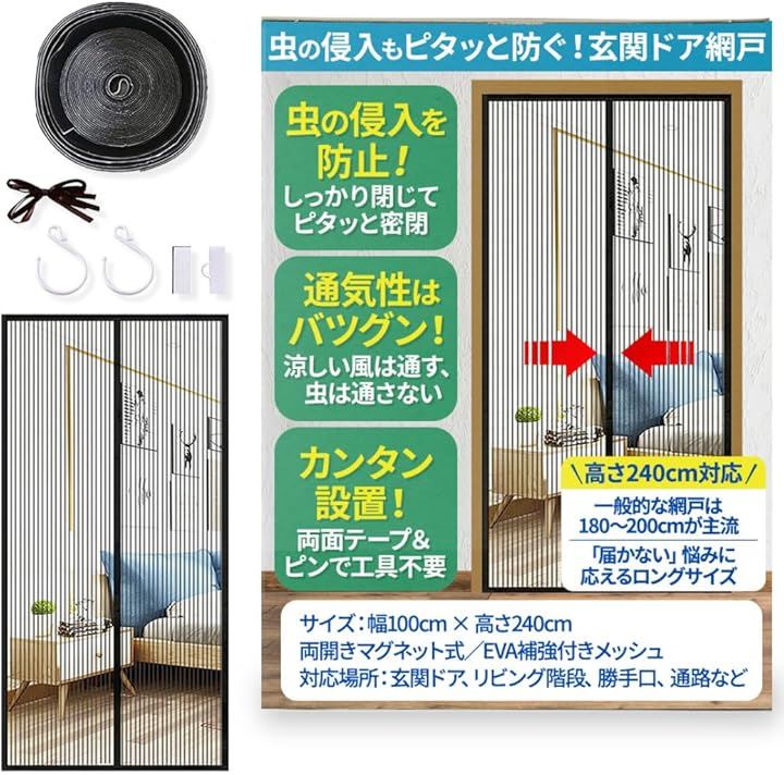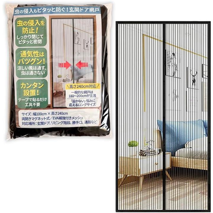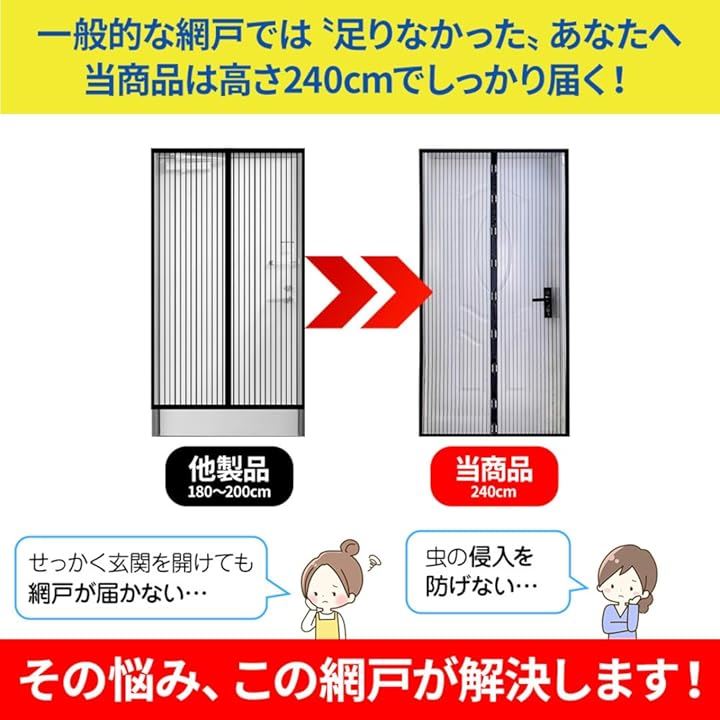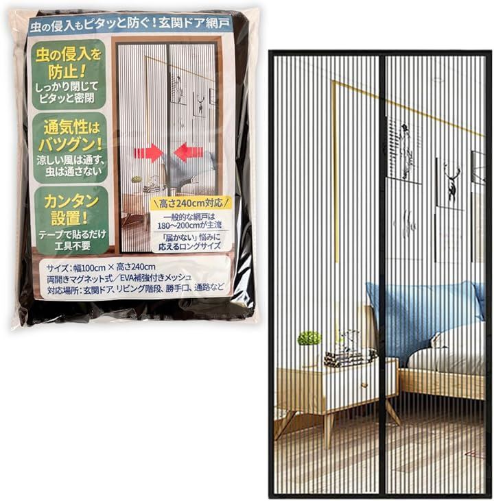 高さ240cm対応 ドア用網戸 100x240cm マグネット式 自動で閉まる ロングサイズ 防虫 玄関 階段通路用 簡単取り付け