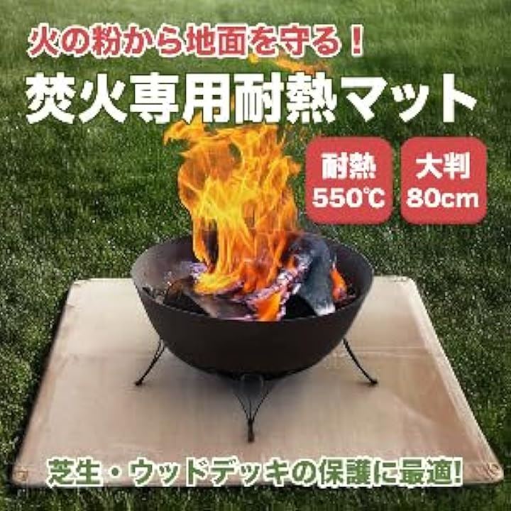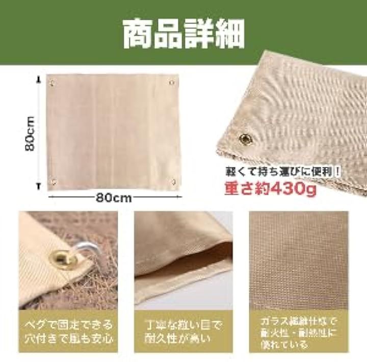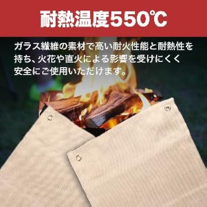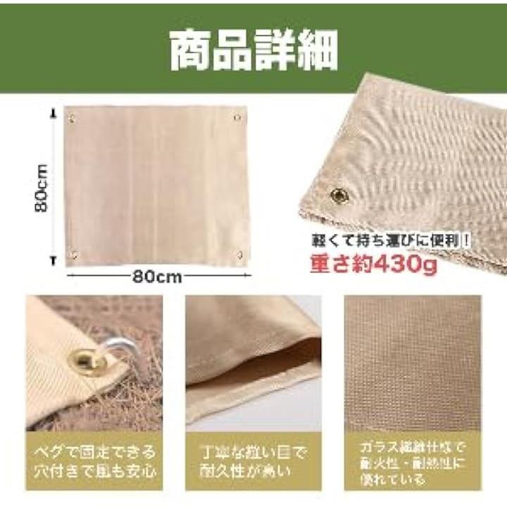 アウトドア キャンプ用 焚火シート 80x80cm 極厚430g 焚火台用シート BBQ 耐熱ガラス繊維 シリコン加工 保護マット 防火・耐火・耐熱グロメット付き