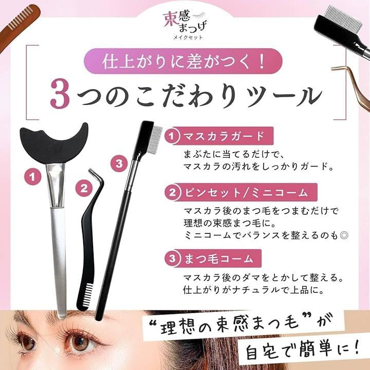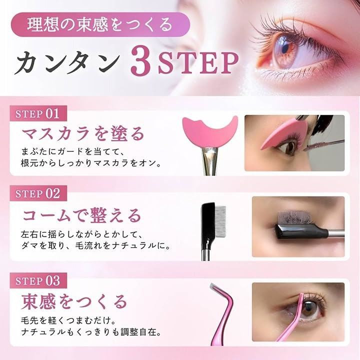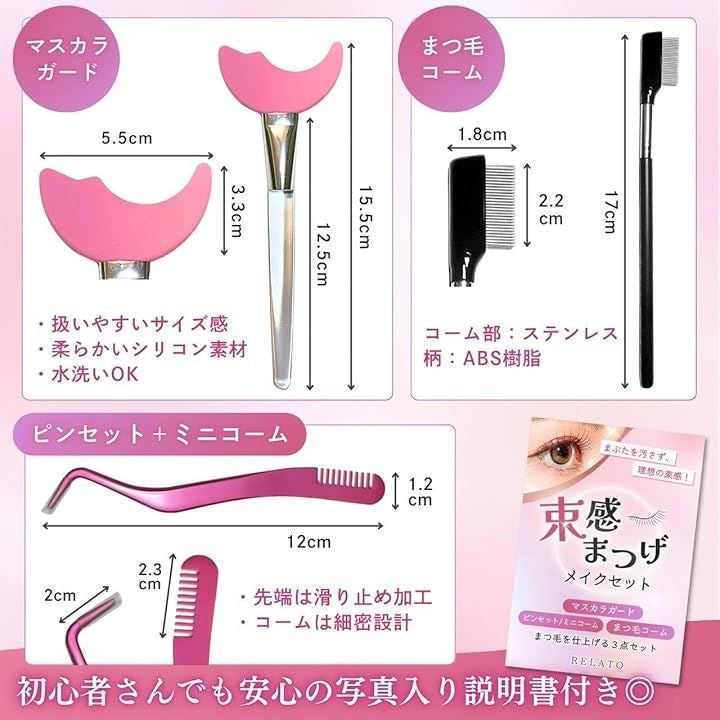 束感まつげ オールインワンセット マスカラガード まつ毛コーム シリコン ステンレス 取扱説明書付