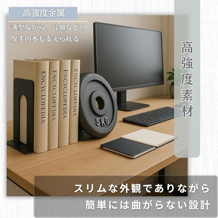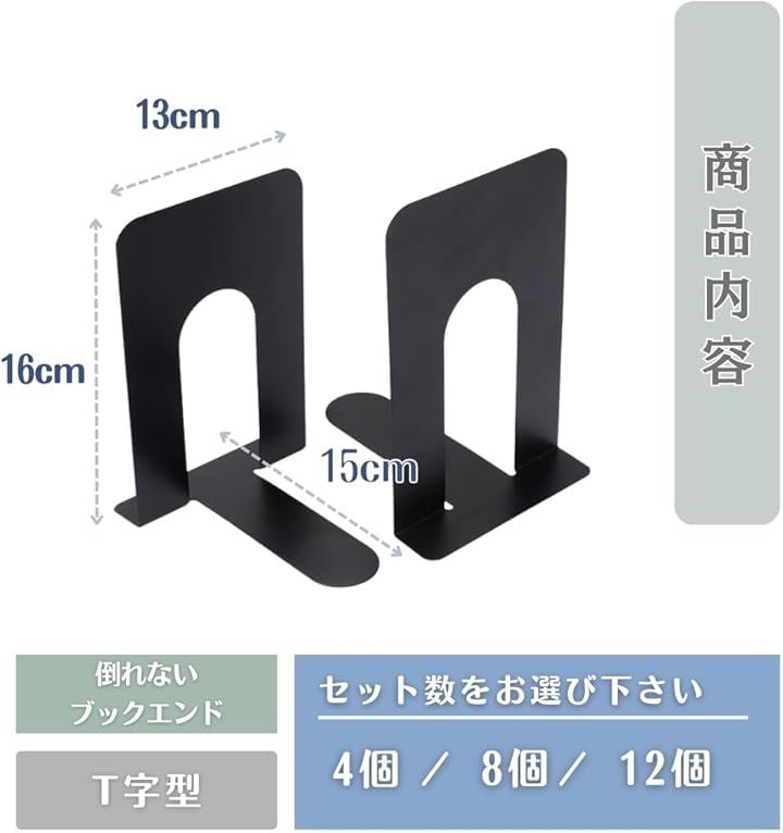ブックエンド 卓上 倒れない ブックスタンド 薄型 本立て T字 高さ16cm