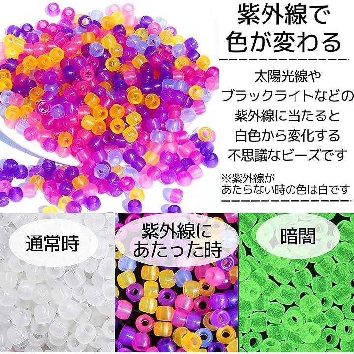 この特別な変色ビーズは、太陽光線やブラックライトなどの紫外線に当たると、驚くべき変化を見せます。