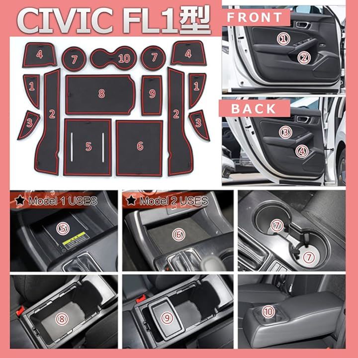 互換品スタートサイド ホンダ 新型シビック 11代目 内装 パーツ アクセサリー インテリア ラバーマット ノンスリップマット 滑り止めマット